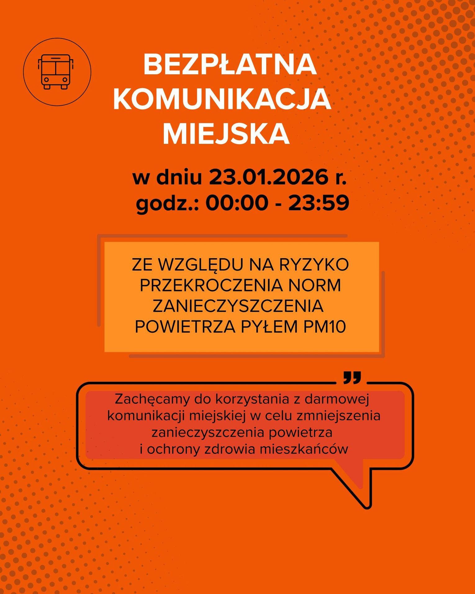 Jak informuje ratusz, uchwała Rady Miasta Rzeszowa wprowadza bezpłatne przejazdy w sytuacji, gdy służby ostrzegają przed ryzykiem przekroczenia dopuszczalnych norm zanieczyszczenia powietrza. Tym razem podstawą było ostrzeżenie wydane przez Wojewódzkie Centrum Zarządzania Kryzysowego na 22 stycznia 2026 r., dotyczące możliwego przekroczenia stężeń pyłu zawieszonego PM10.
