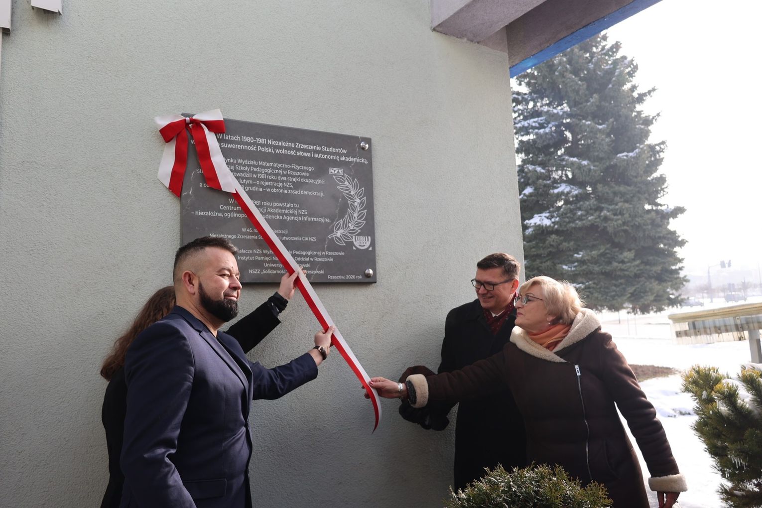Tablicę odsłonili dyrektor rzeszowskiego IPN dr hab. Dariusz Iwaneczko, dziekan Wydziału Nauk Społecznych UR prof. Krzysztof Żarna, przewodnicząca Regionalnej Sekcji Oświaty i Wychowania NSZZ „Solidarność” Bogusława Buda oraz przewodnicząca Niezależnego Zrzeszenia Studentów Uniwersytetu Rzeszowskiego Daria Węgrzyn. W uroczystości uczestniczyli też dawni działacze NZS, przedstawiciele władz państwowych i samorządowych, a także reprezentanci środowisk „Solidarności” i inni goście.