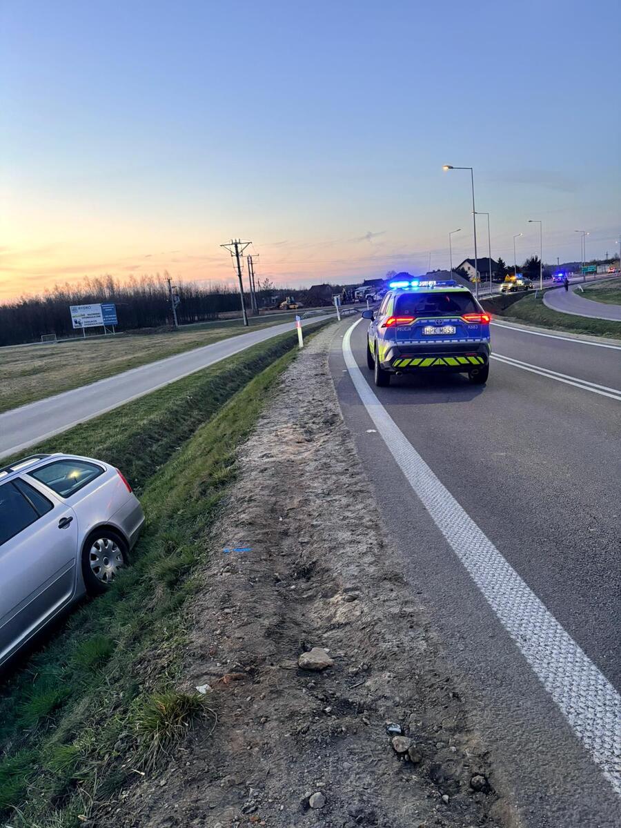 Na łuku drogi mężczyzna nagle stracił panowanie nad pojazdem, zjechał na przeciwległy pas ruchu i doprowadził do zderzenia z oplem. Siła uderzenia była tak duża, że kolejny pojazd – skoda, jadąca prawidłowo – została zepchnięta do przydrożnego rowu.
