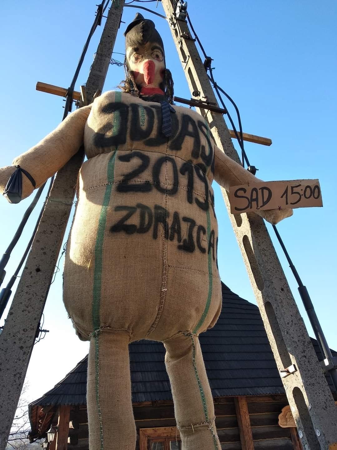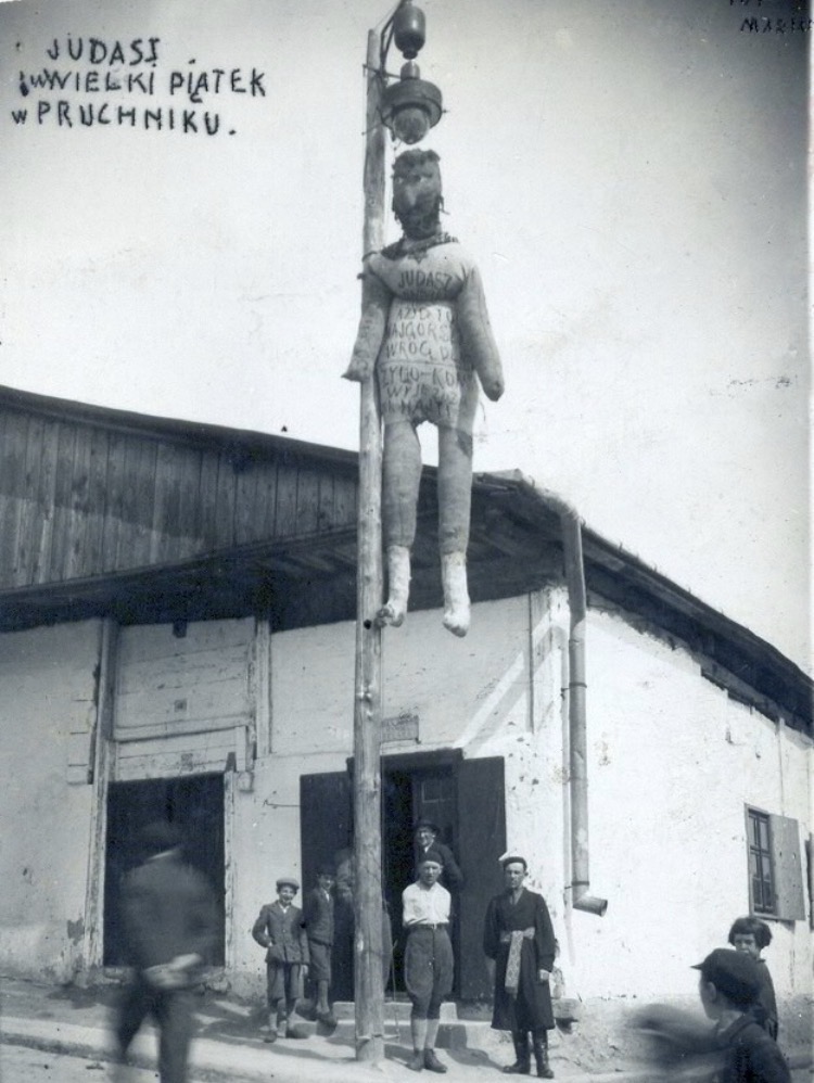 W relacjach z Pruchnika od lat widać stopniowe „dogęszczanie” symboliki. W 1968 r. kukła miała rysy izraelskiego generała Mosze Dajana – wtedy mocno demonizowanego w polskiej propagandzie. Po 1989 r. dodawano czerwony krawat, odsyłający do fantazmatów o „żydokomunie”. W 2001 r. napis „Judasz zdrajca” zastąpiło słowo „Jude”, a część mieszkańców zaczęła mówić wprost: „Żyd wydał Żyda za trzydzieści srebrników. To należy mu się kara”. W tle pojawiały się odwołania do Jedwabnego i współczesnych sporów o pamięć. Nic dziwnego, że w 2019 roku reakcja opinii publicznej była ostra. Politycy, publicyści i organizacje społeczne zwracali uwagę nie tylko na antysemicki przekaz, ale też na fakt, że w rolę katów wciągnięto dzieci – ucząc je, że przemoc wobec „wroga” może być formą zabawy i „pielęgnowania tradycji”.