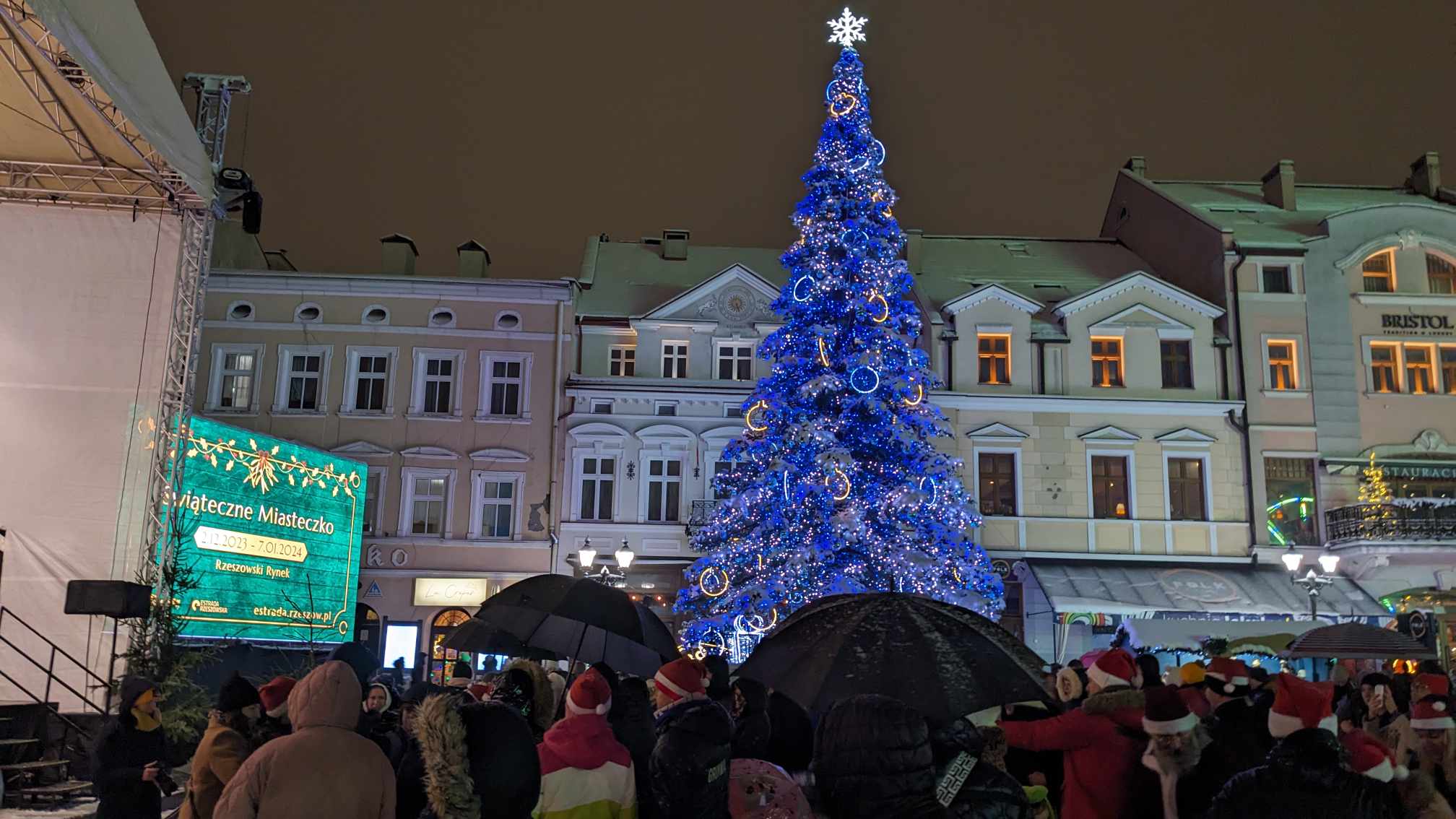 Olbrzymia choinka z tysiącami światełek, diabelski młyn, dom...