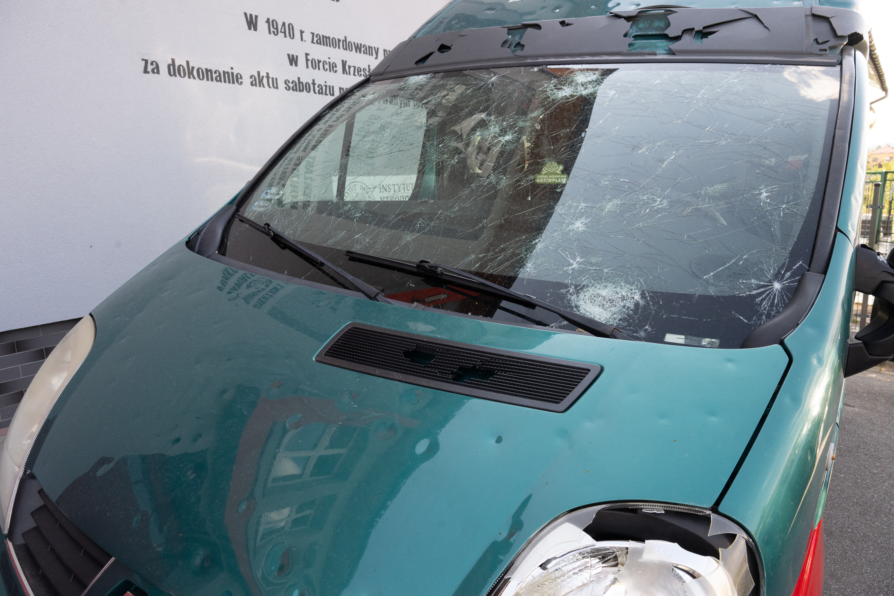 Bryła lodu spadła na samochód osobowy. Jedna osoba ranna
