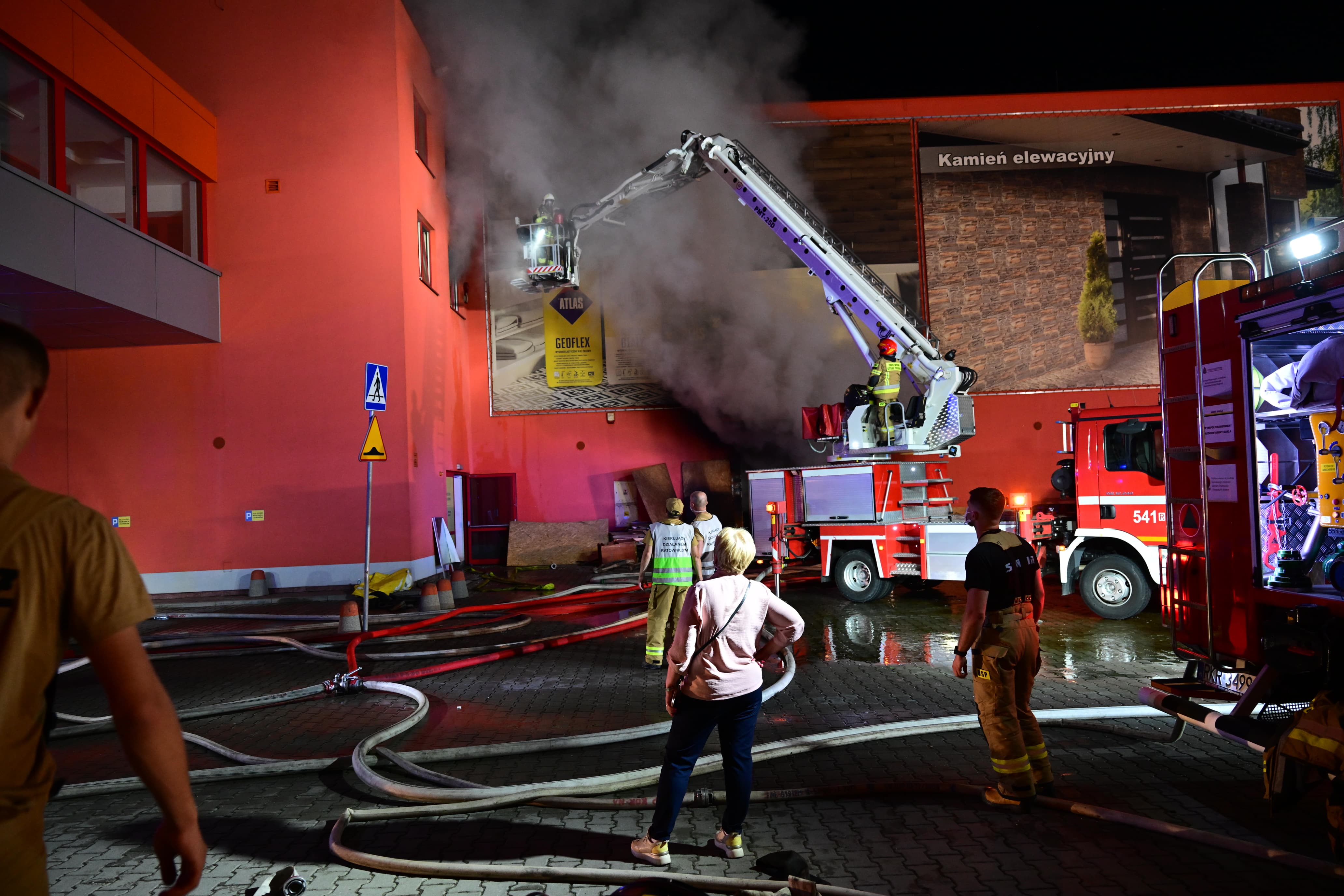 Wojewoda na miejscu pożaru marketu Merkury w Krośnie