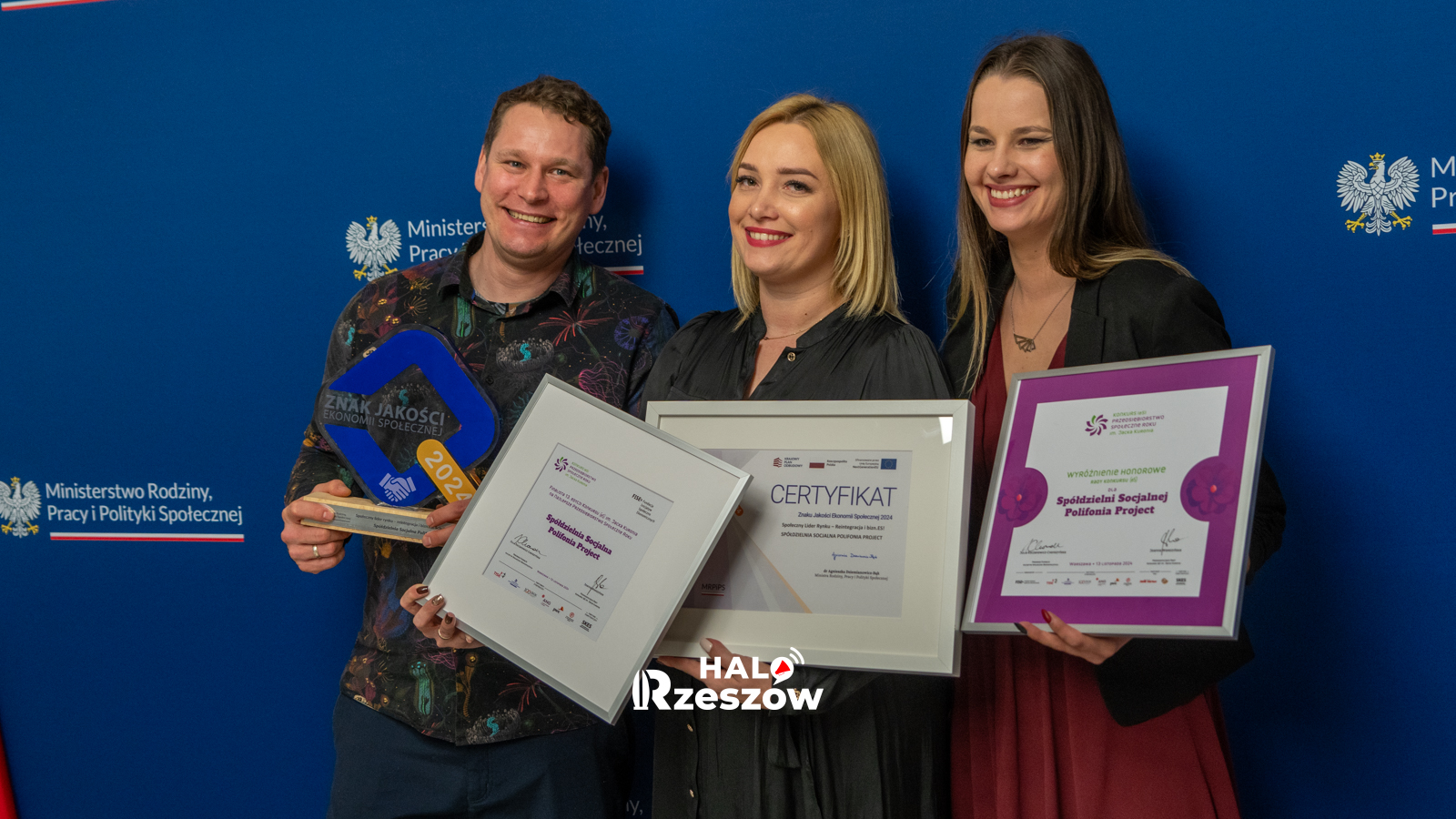 Spółdzielnia Socjalna Polifonia Project z nagrodami od Ministerstwa Rodziny, Pracy i Polityki Społecznej. Zdjęcia z gali