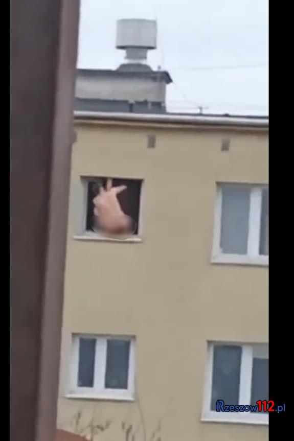 Rzeszów. Nagi desperat grozi, że wyskoczy z okna!