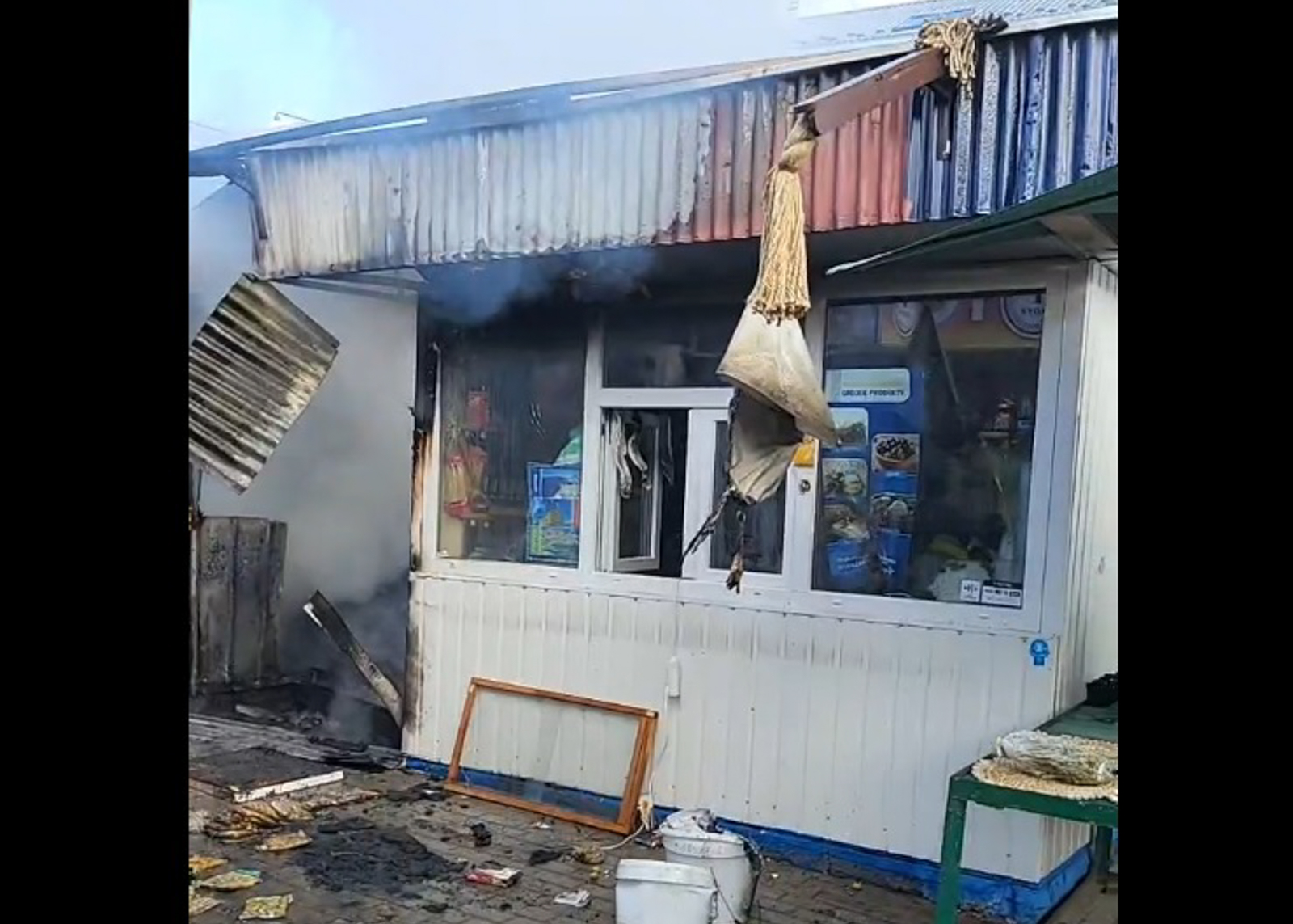 Zdjęcie: Pożar na rzeszowskim targowisku.