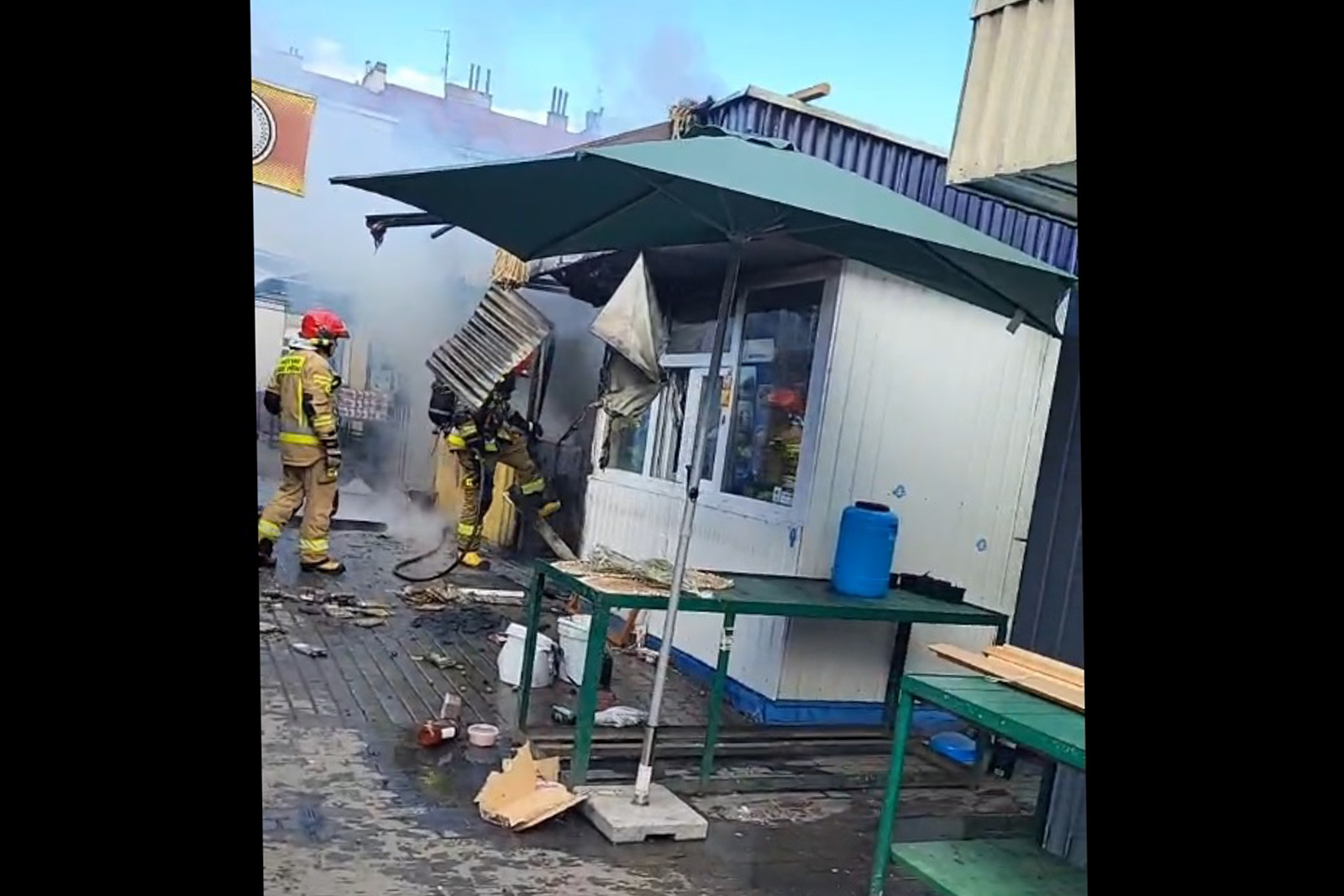 Zdjęcie: Pożar na rzeszowskim targowisku.
