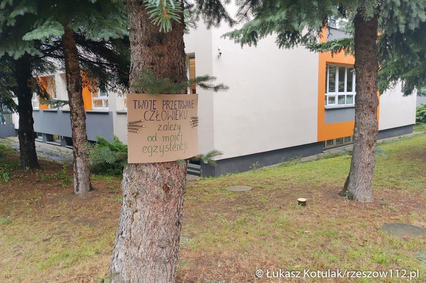 Protest przeciw wycince drzew przy SP 25 na Baranówce