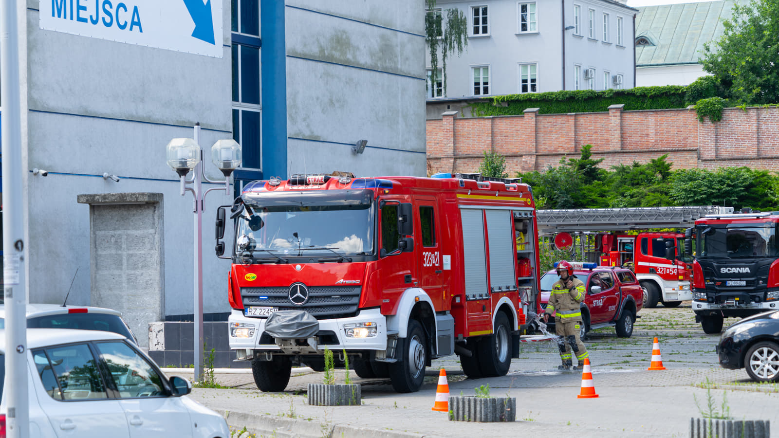 Straż pożarna w budynku Elektromontaż Rzeszów