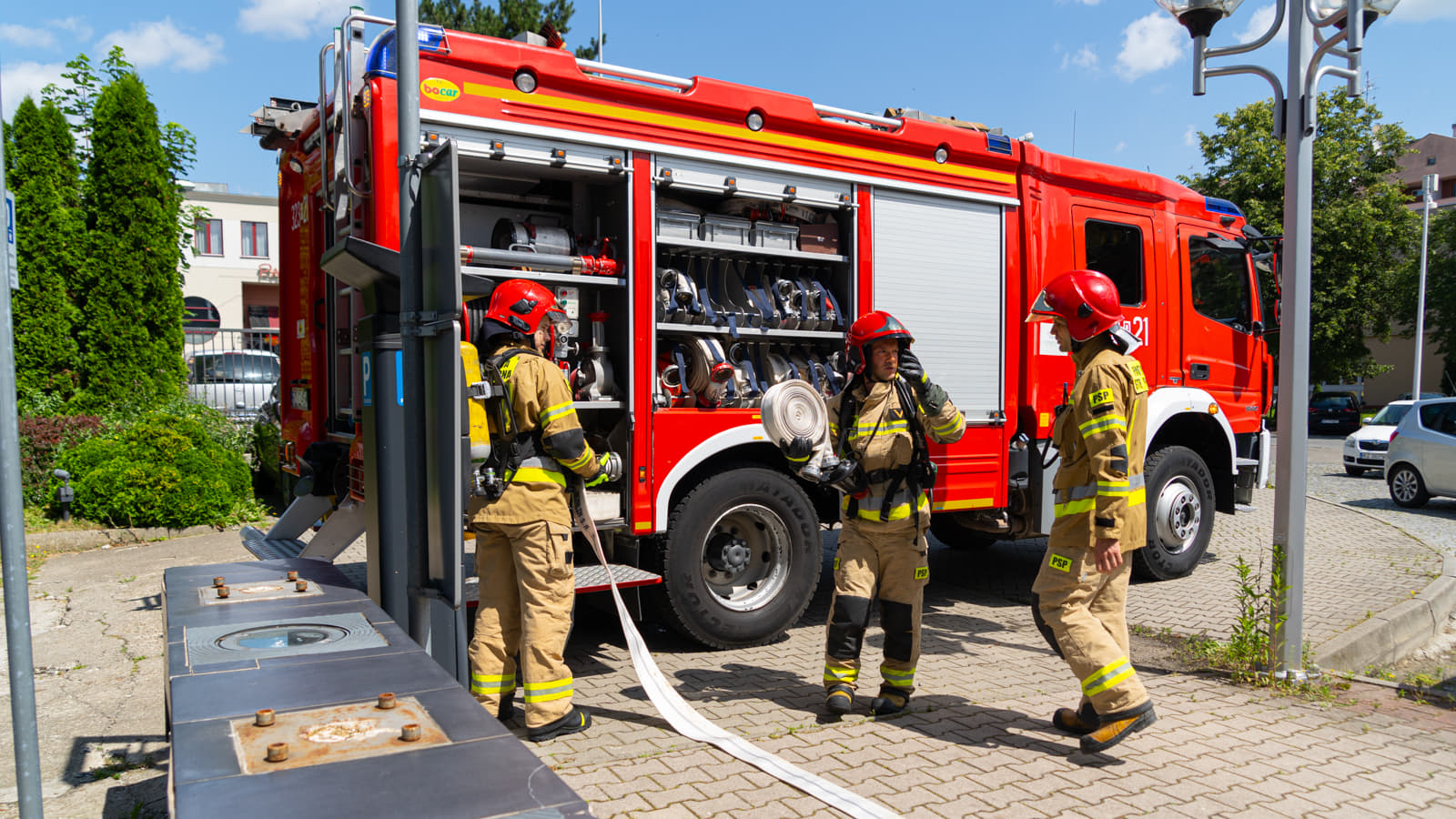 Straż pożarna w budynku Elektromontaż Rzeszów