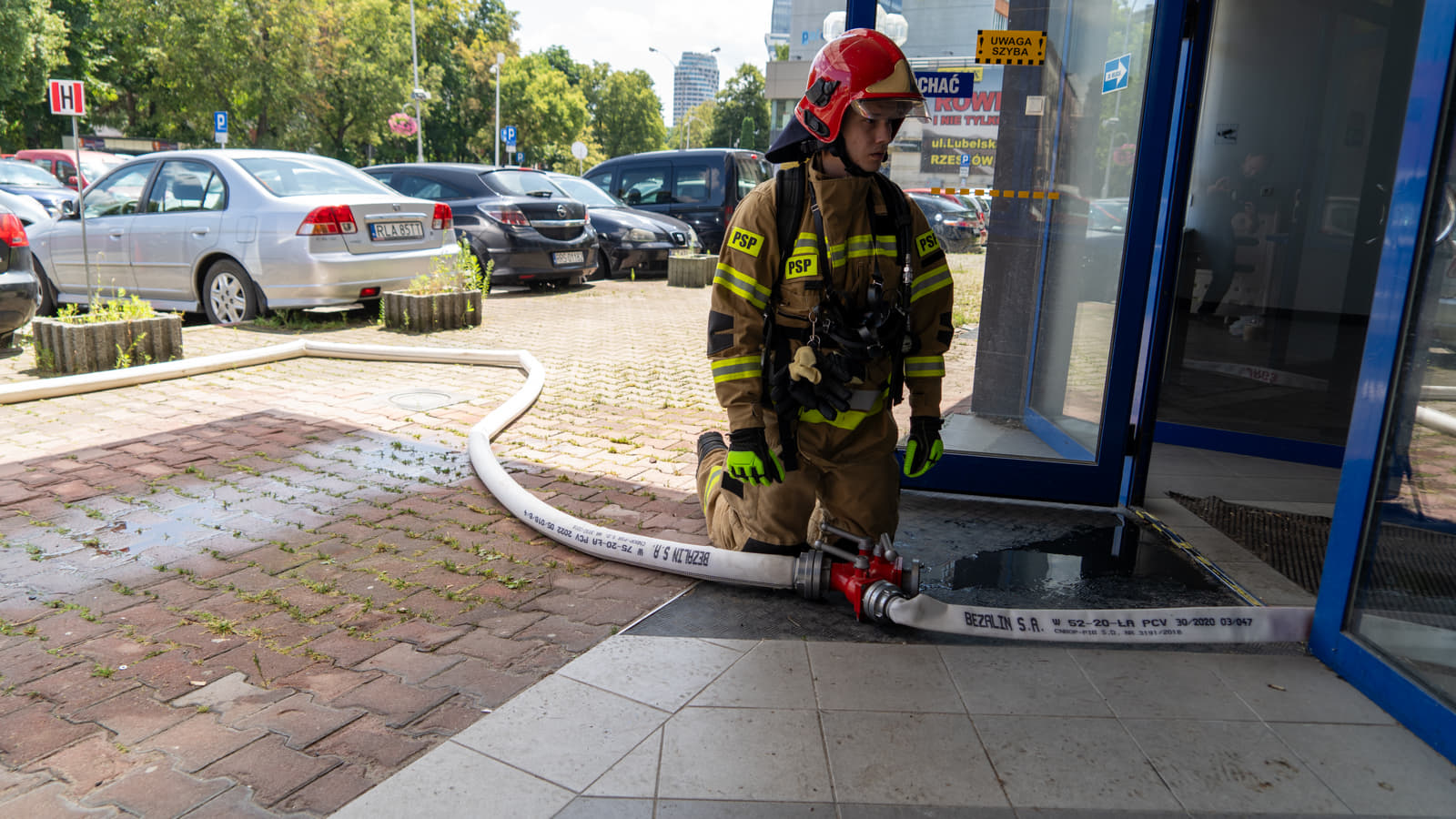 Straż pożarna w budynku Elektromontaż Rzeszów