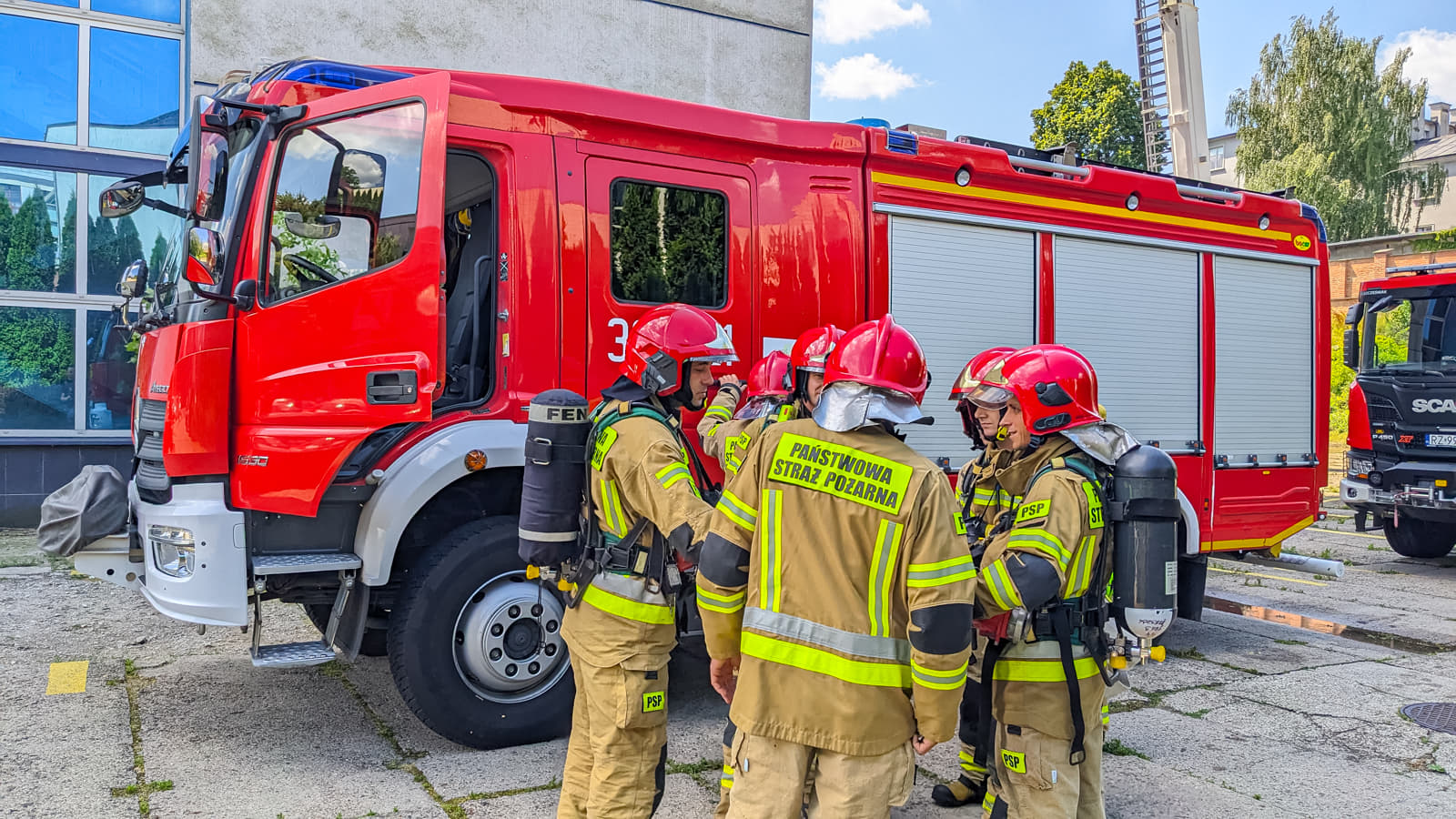 Straż pożarna w budynku Elektromontaż Rzeszów