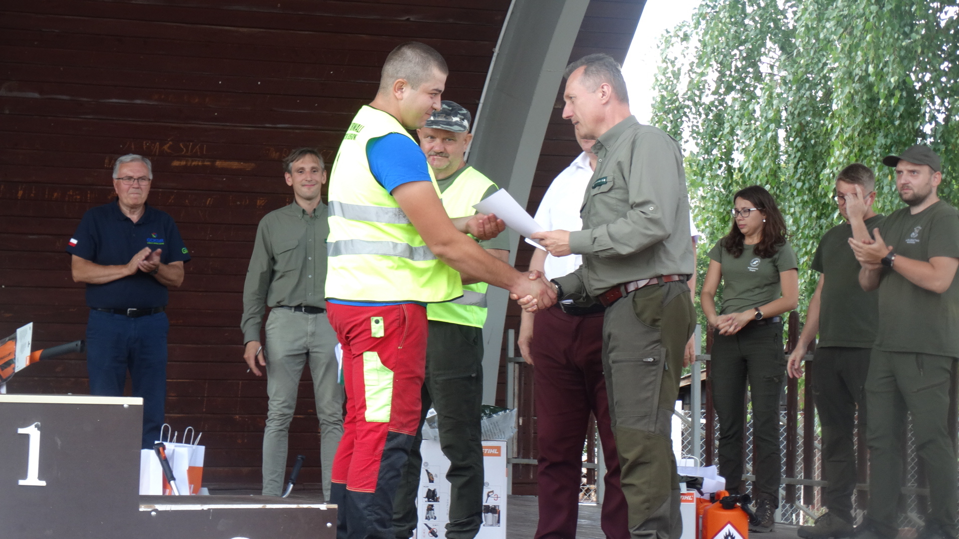 Zdjęcie: V Zawody Drwali Nadleśnictwa Głogów. Na podium mies...