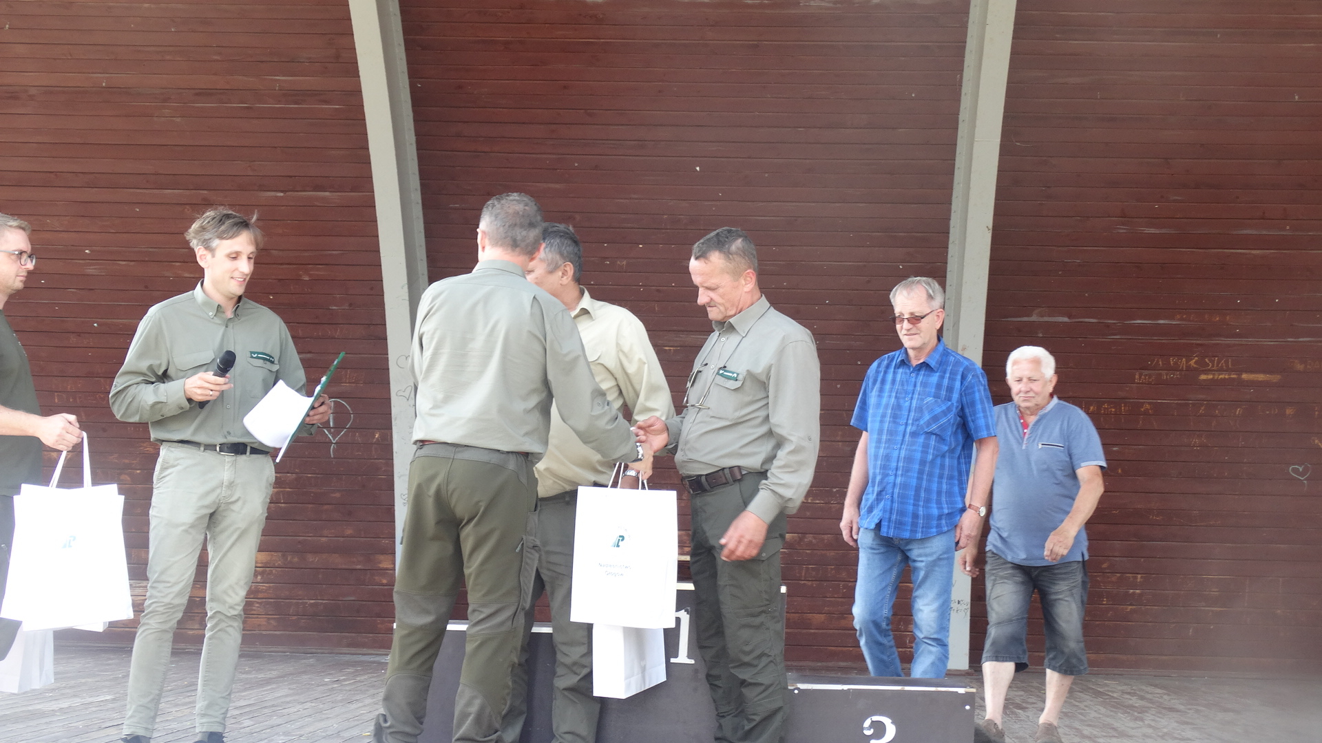 Zdjęcie: V Zawody Drwali Nadleśnictwa Głogów. Na podium mies...