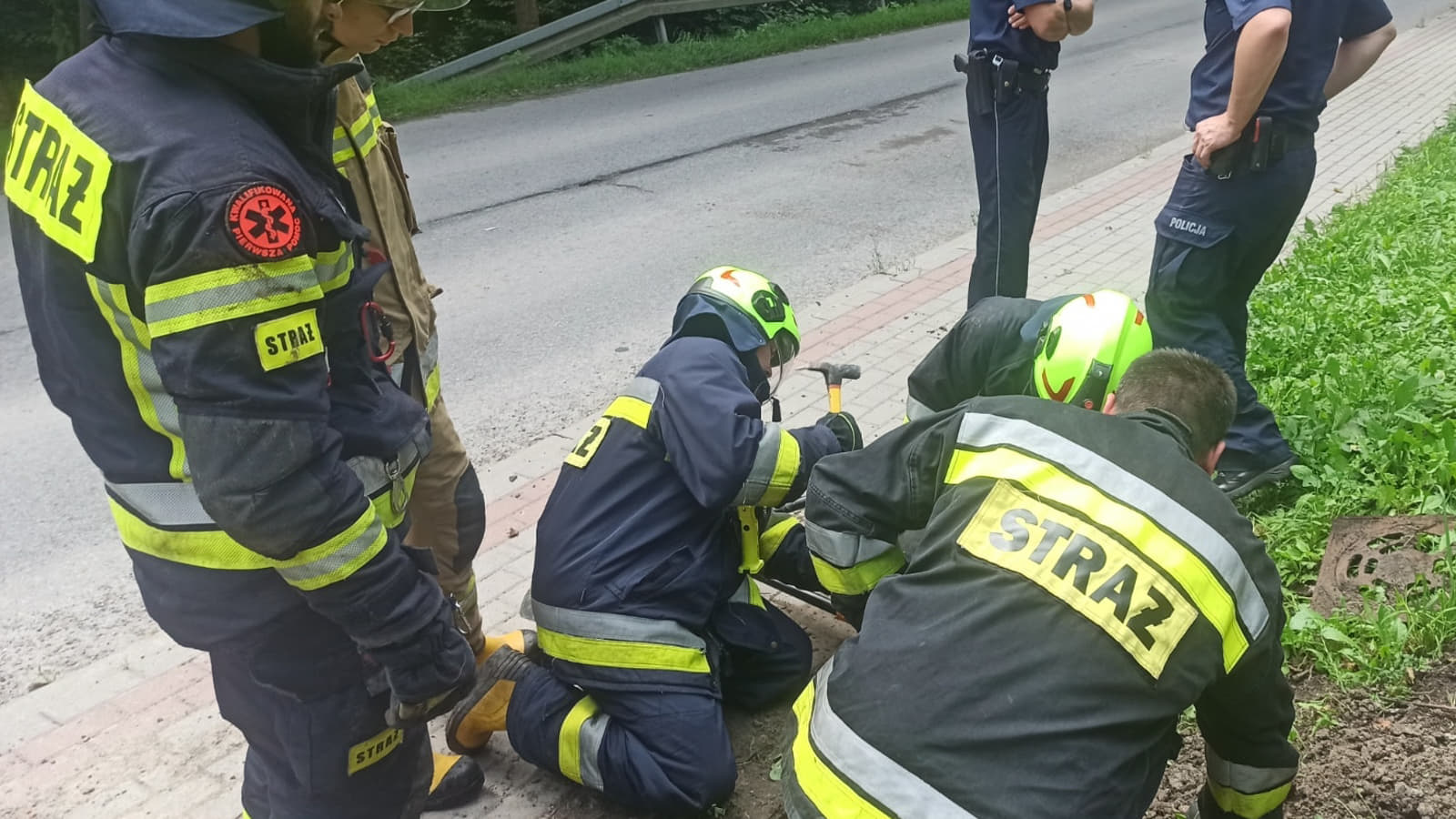 Zdjęcie: Hermanowa. Strażacy uratowali pieska z rury odpływo...