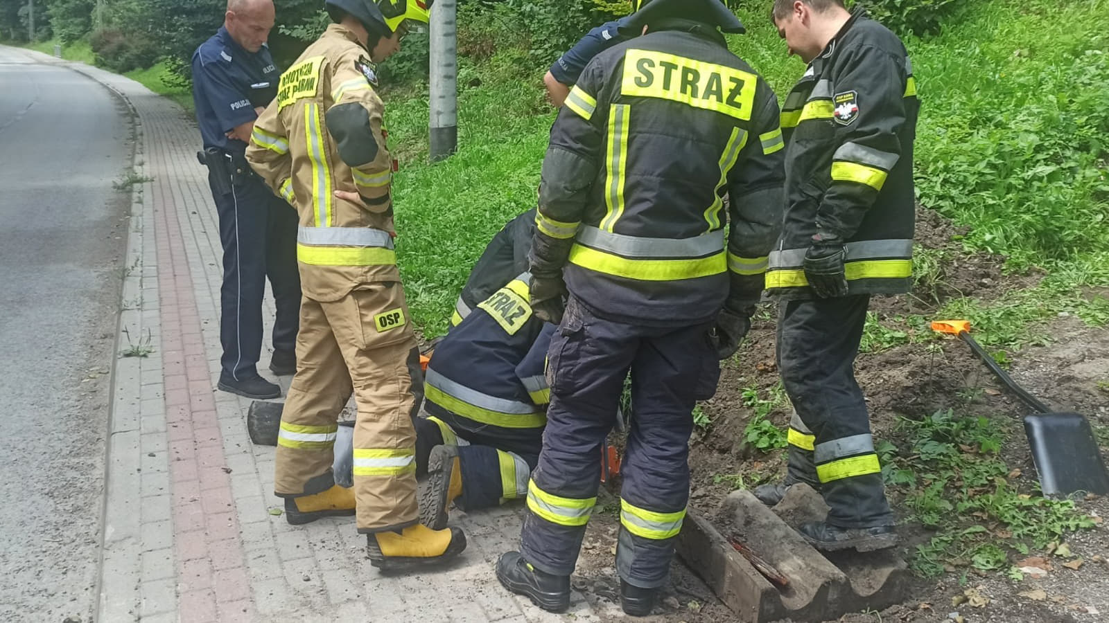 Zdjęcie: Hermanowa. Strażacy uratowali pieska z rury odpływo...