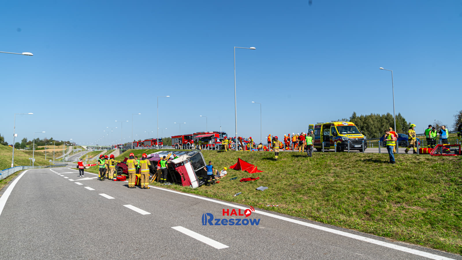 Wypadek busa na autostradzie A4 w okolicach Przeworska