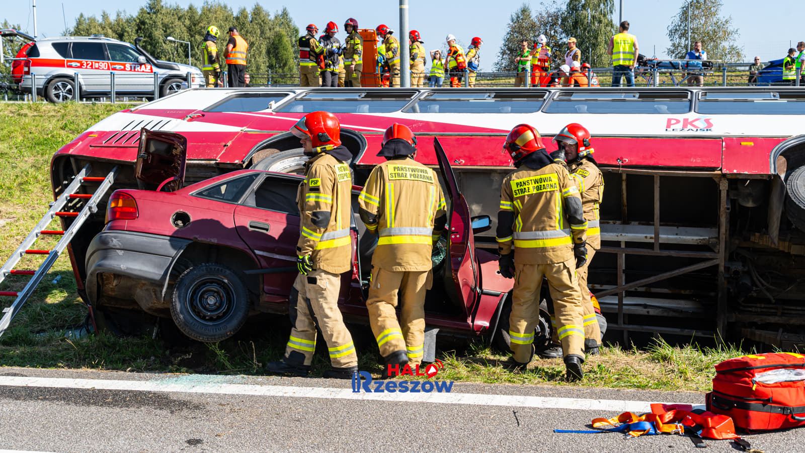 Zdjęcie: Wypadek autokaru i samochodów na S19. Ćwiczenia str...