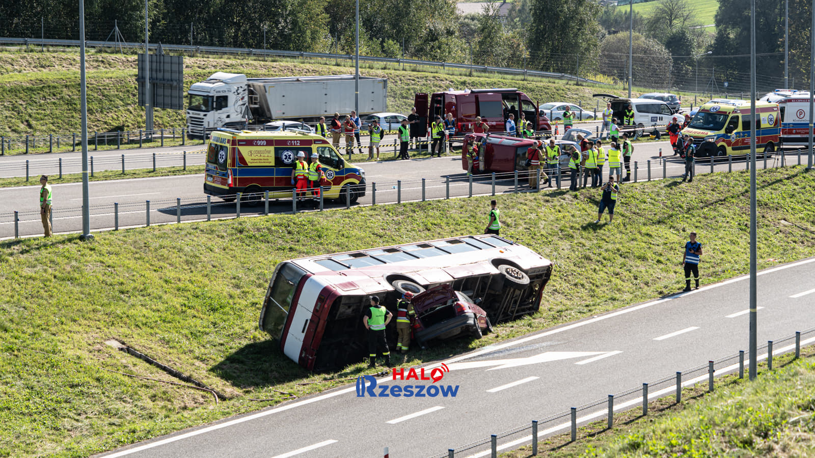 Wypadek busa na autostradzie A4 w okolicach Przeworska