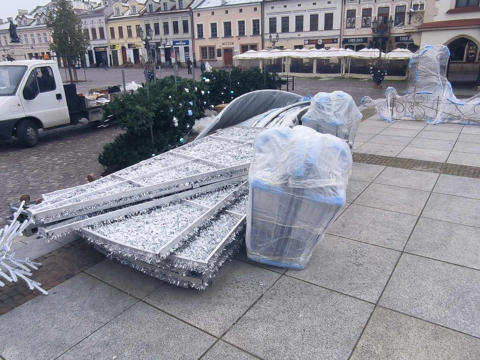 Zdjęcie: Trwa montaż choinki na rzeszowskim Rynku [ZDJĘCIA]