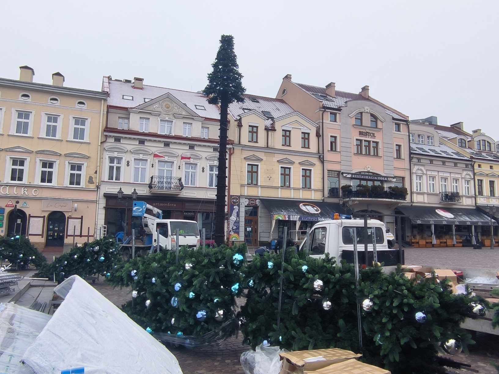 Zdjęcie: Trwa montaż choinki na rzeszowskim Rynku [ZDJĘCIA]