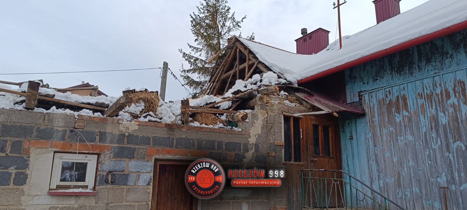 Zdjęcie: Zawalony dach budynku gospodarczego w Rudnej Wielki...