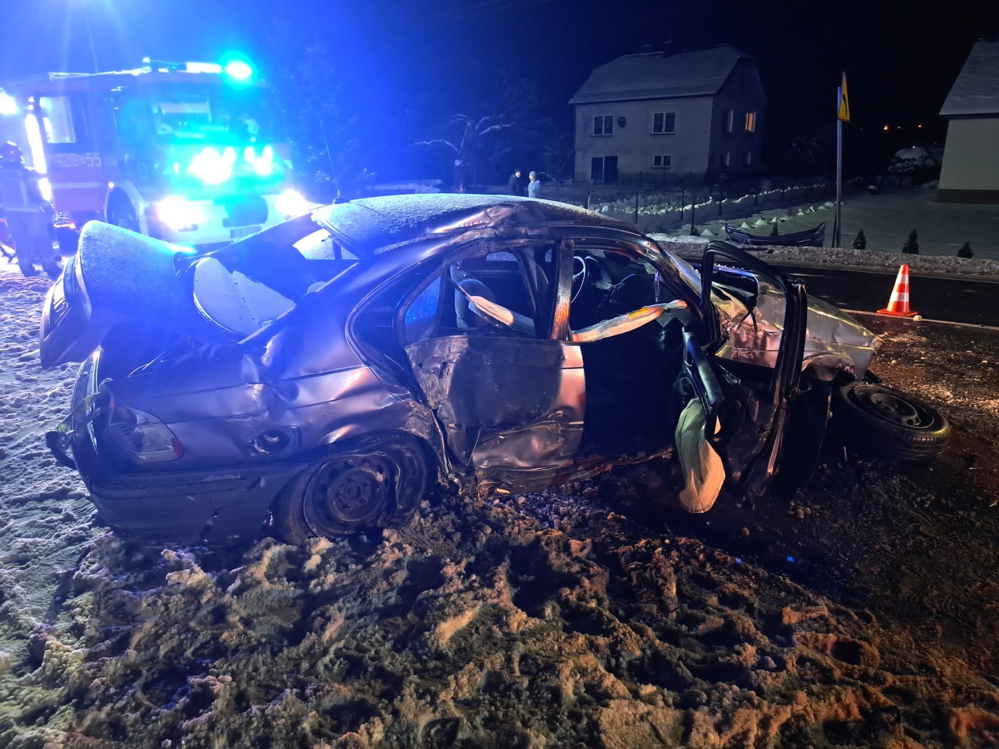 Bryła lodu spadła na samochód osobowy. Jedna osoba ranna