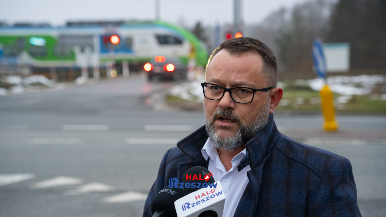 Głogów Młp. Przebiegają przez ruchliwą drogę krajową żeby zdążyć na pociąg...