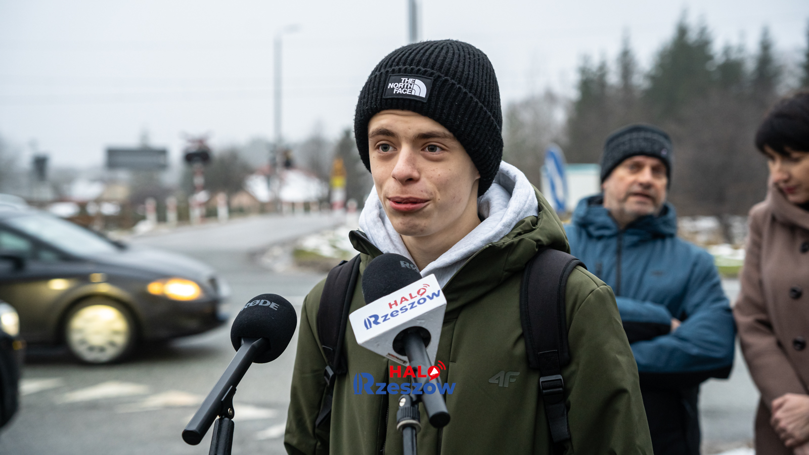 Głogów Młp. Przebiegają przez ruchliwą drogę krajową żeby zdążyć na pociąg...