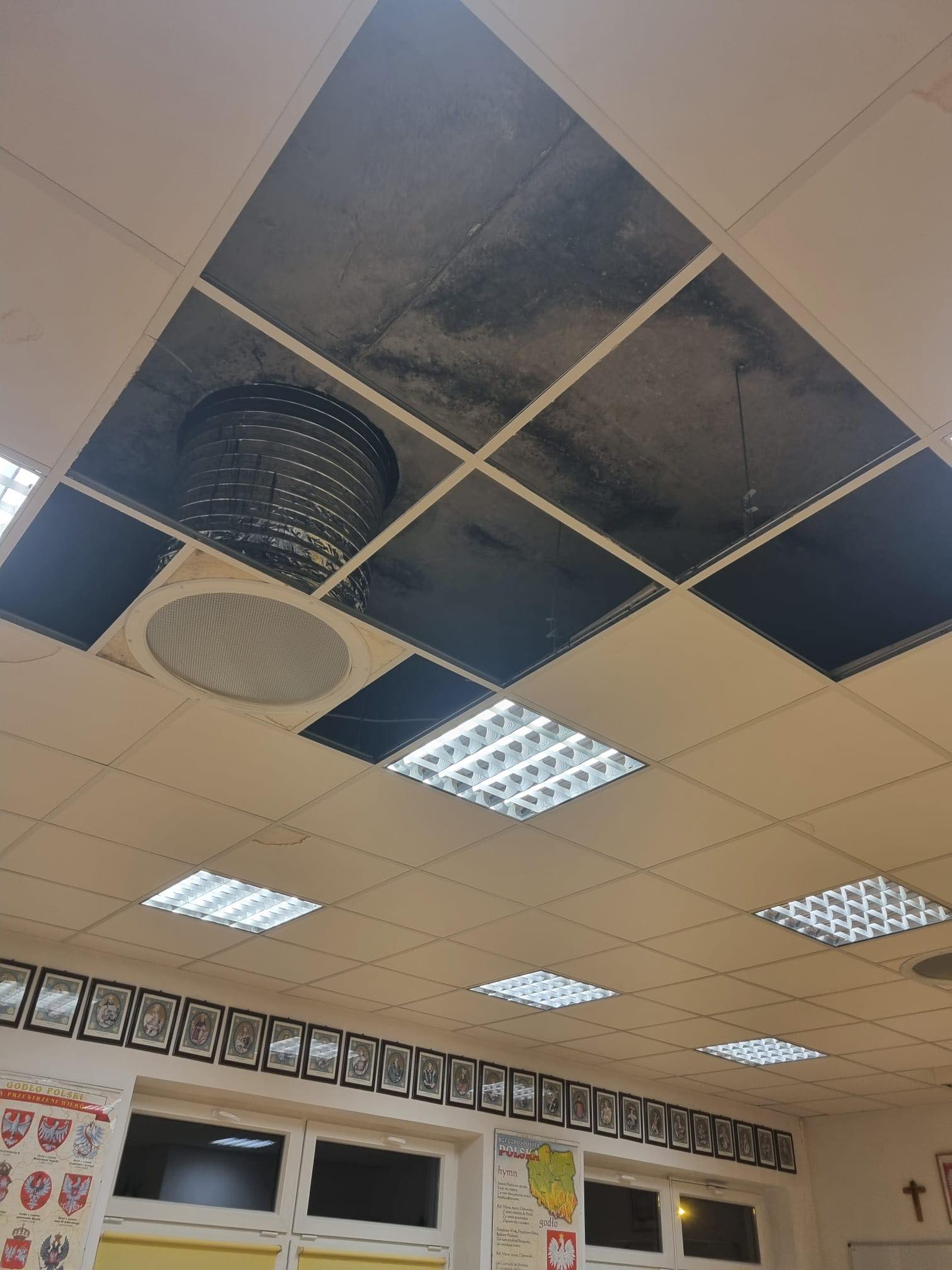 Przeciekający dach w szkole przy ul. Rubinowej. Woda leje się do sal lekcyjnych [FOTO]