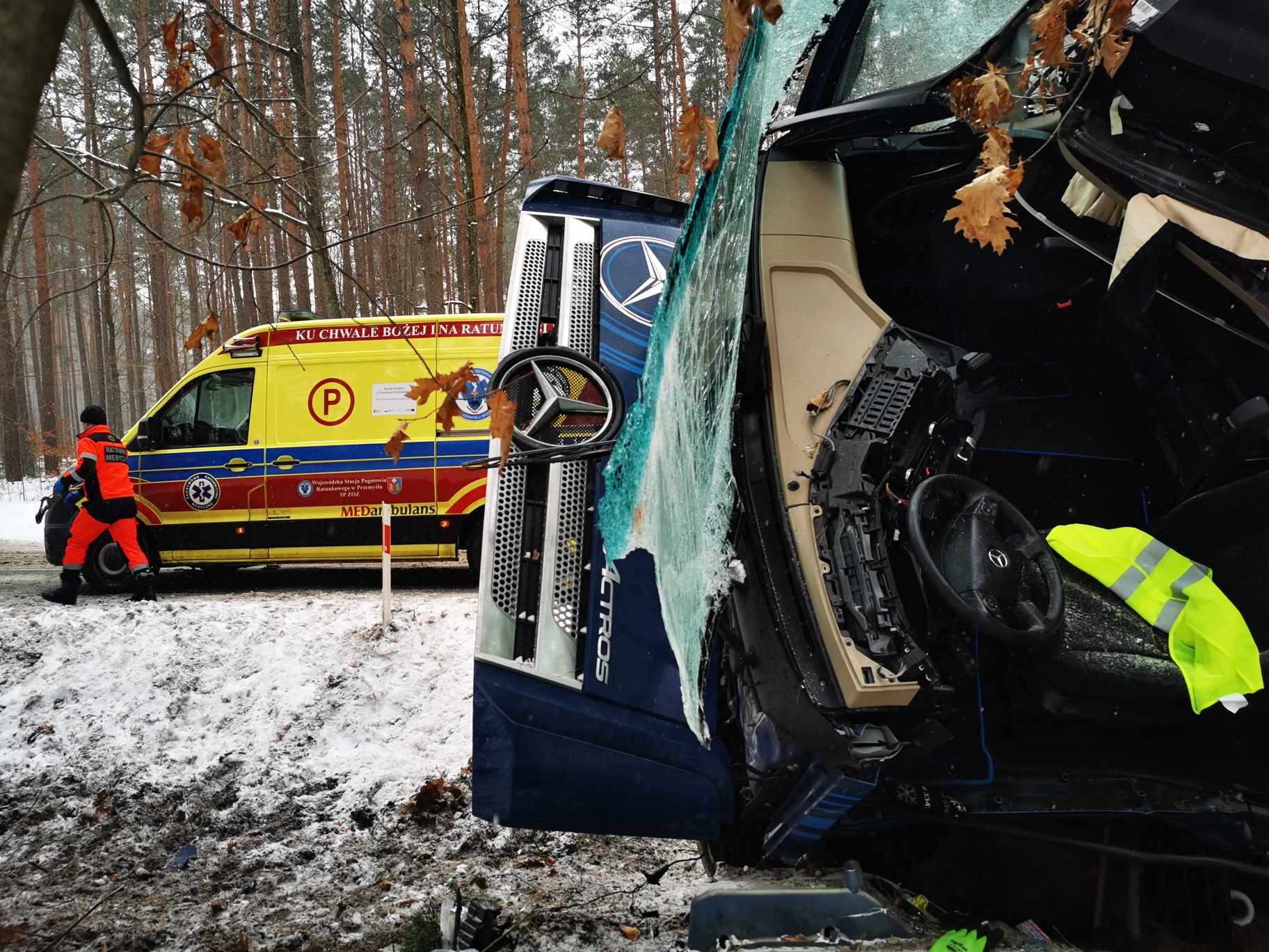 Wypadek busa na autostradzie A4 w okolicach Przeworska