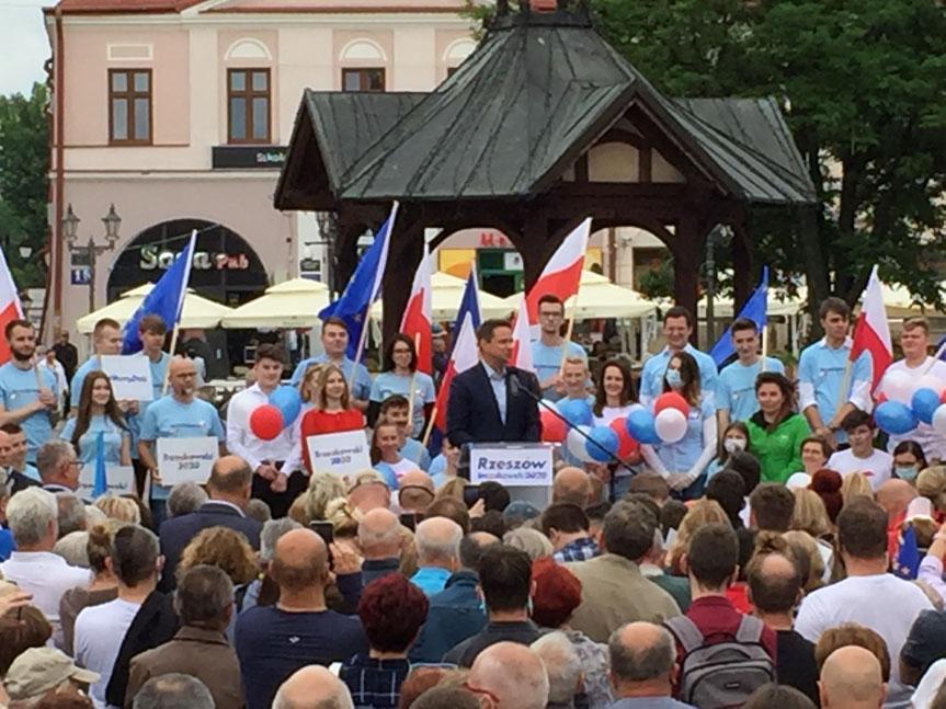 Wybory 2020. Rafał Trzaskowski na rynku w Rzeszowie