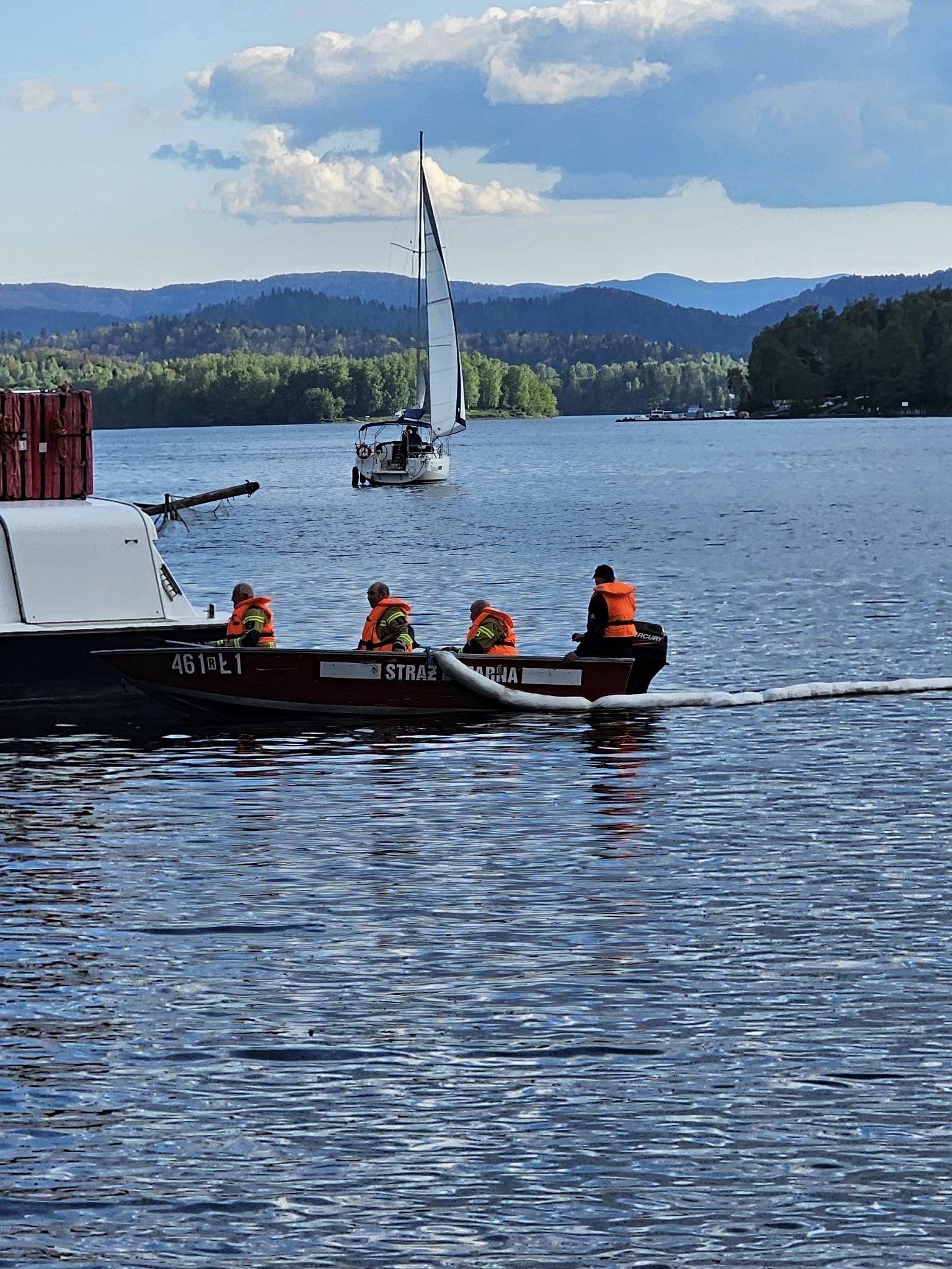 Zdjęcie: Plama ropy na Jeziorze Solińskim. Akcja OSP Polańcz...
