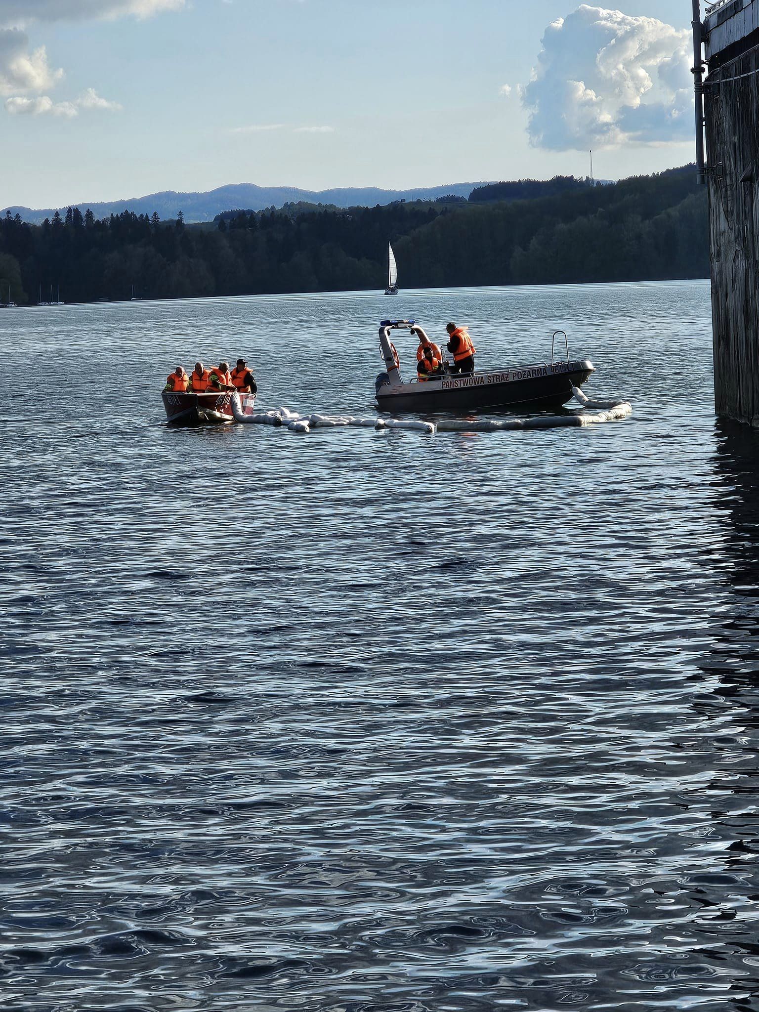 Zdjęcie: Plama ropy na Jeziorze Solińskim. Akcja OSP Polańcz...