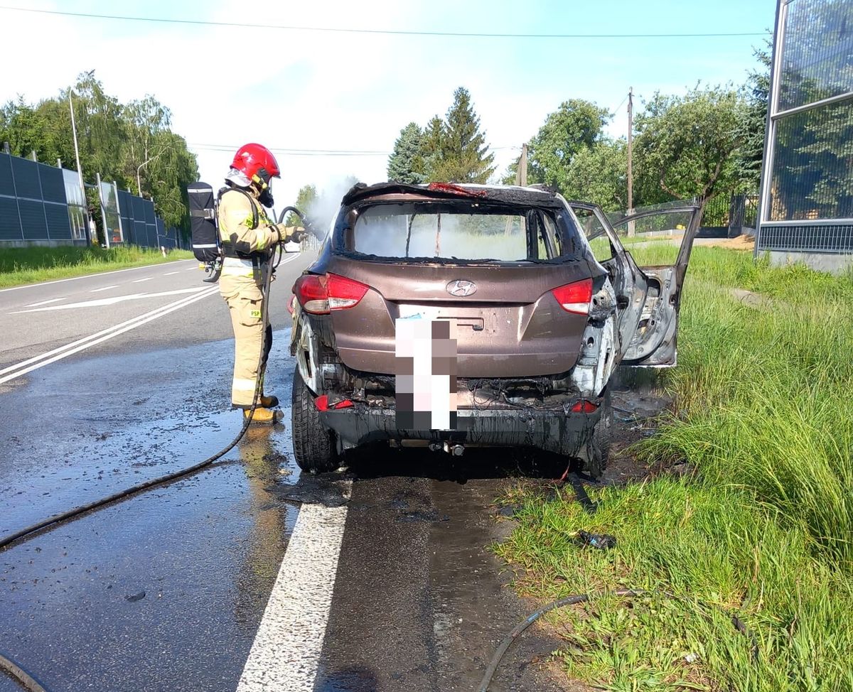 Pożar samochodu na DK94 w Trzcianie pod Rzeszowem [ZDJĘCIA]