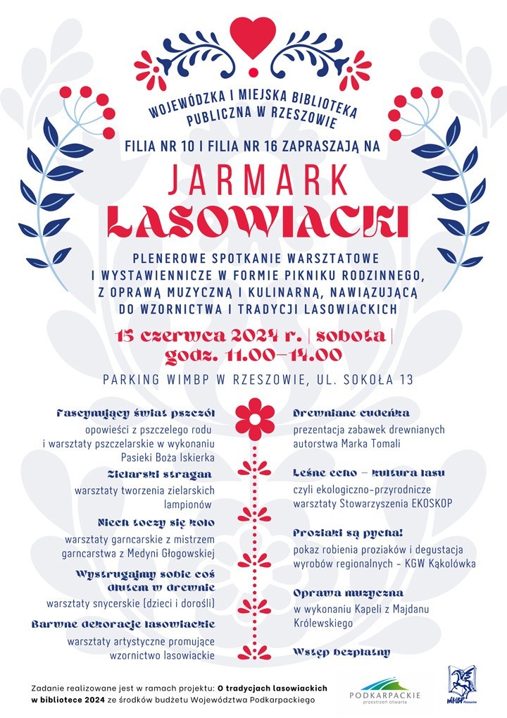 Wojewódzka i Miejska Biblioteka Publiczna w Rzeszowie zaprasza na plenerowe spotkanie warsztatowe i wystawiennicze w formie pikniku rodzinnego, z oprawą muzyczną i kulinarną, nawiązującą do wzornictwa i tradycji lasowiackich.