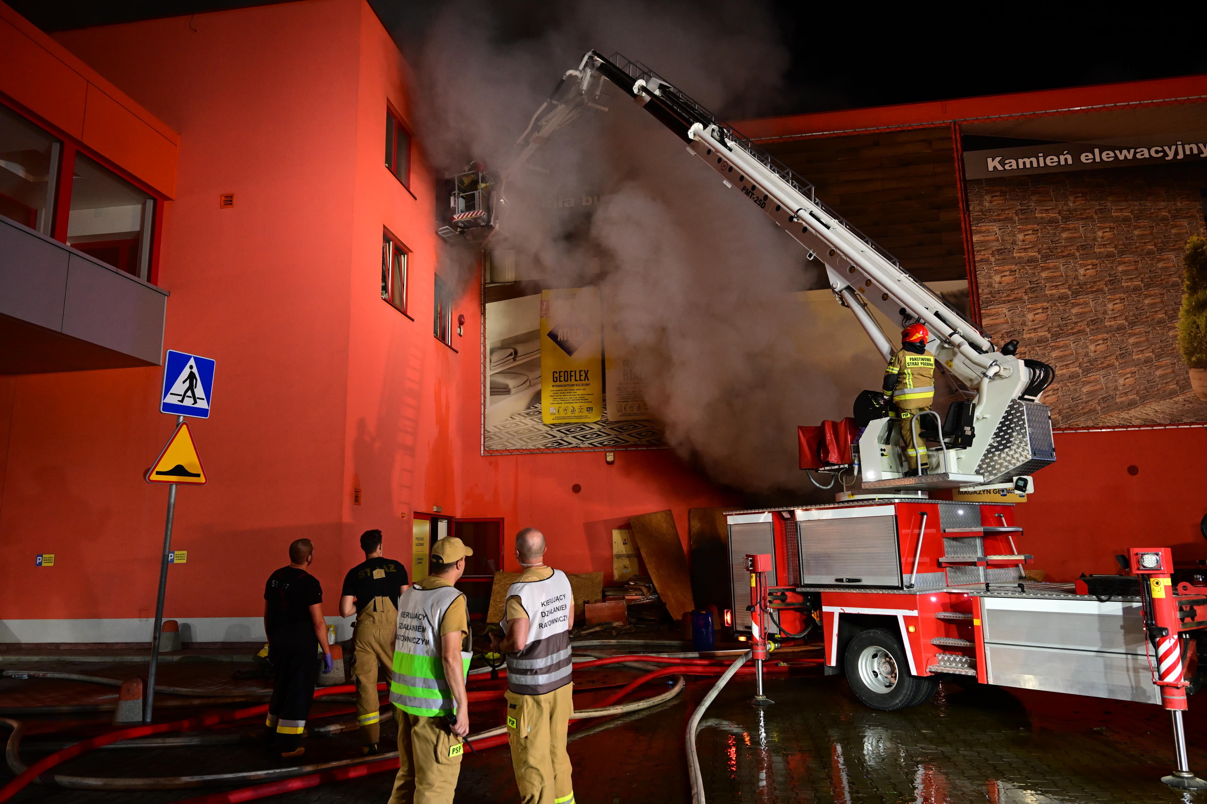 Wojewoda na miejscu pożaru marketu Merkury w Krośnie