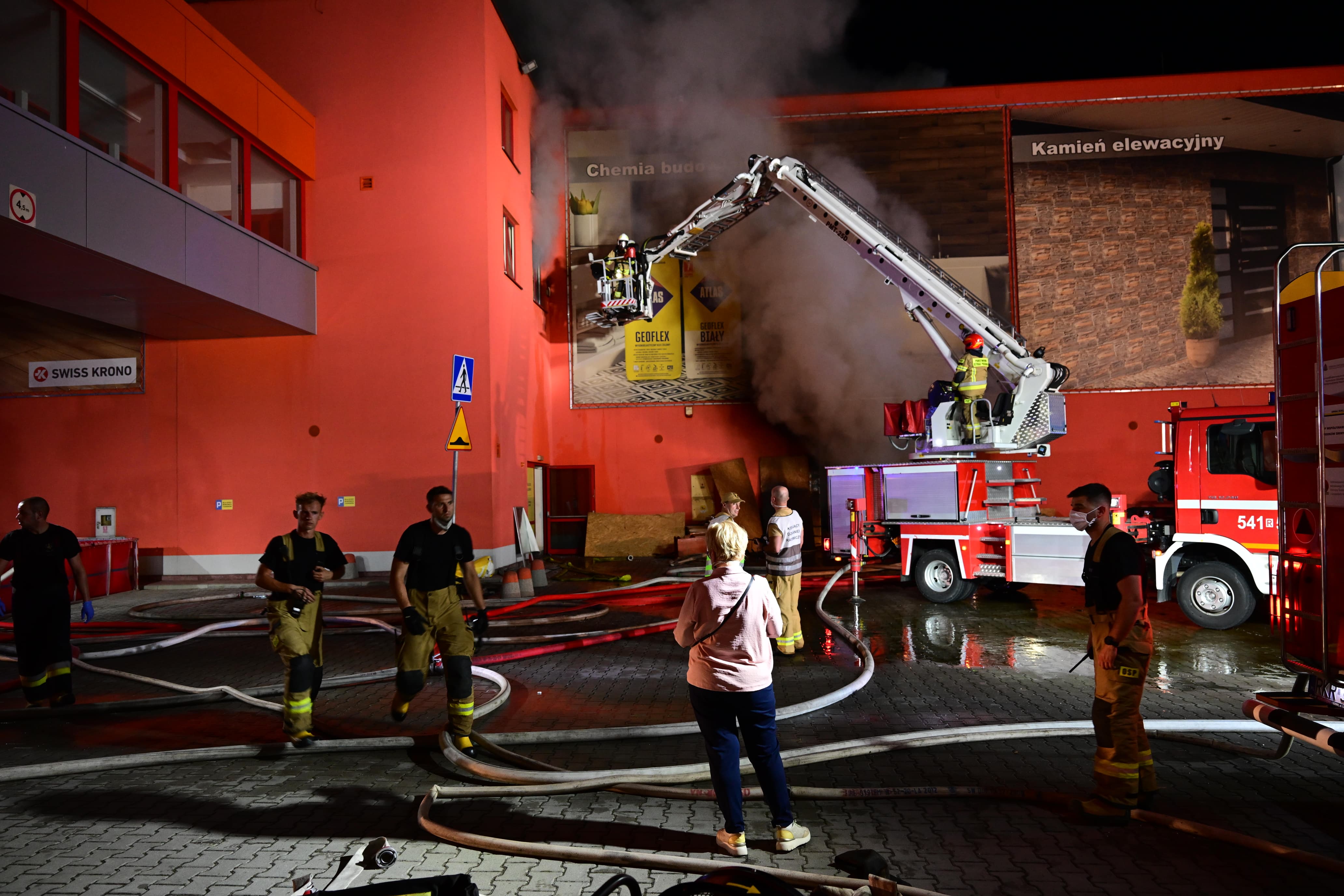 Wojewoda na miejscu pożaru marketu Merkury w Krośnie
