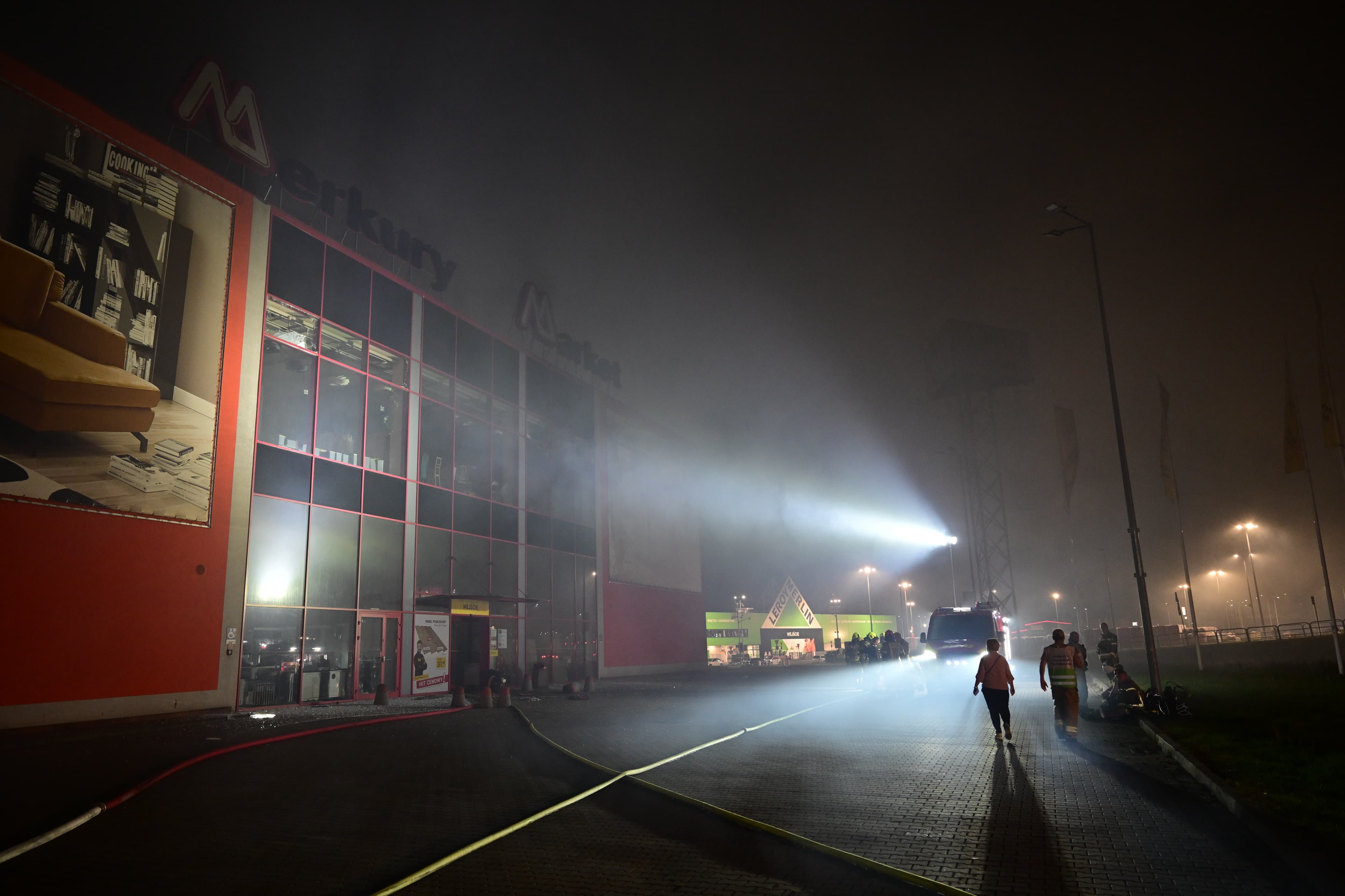 Wojewoda na miejscu pożaru marketu Merkury w Krośnie