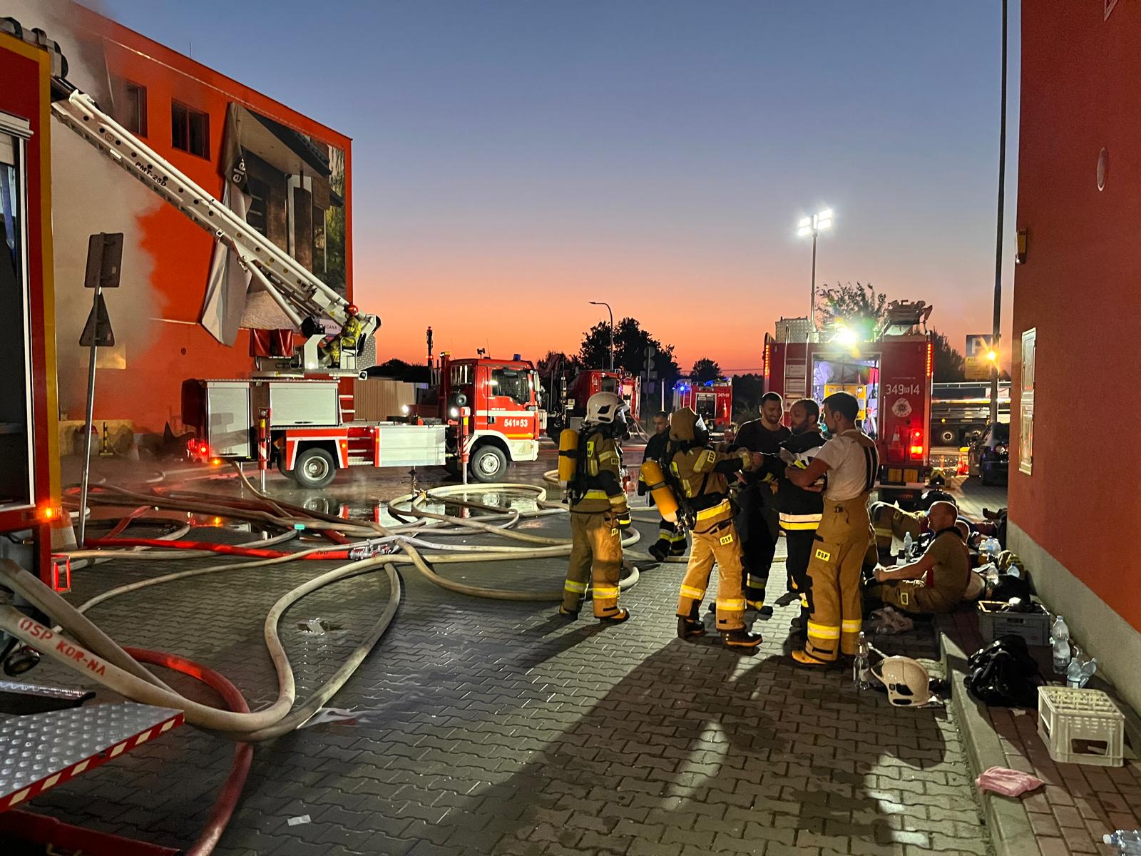 Drugi dzień gaszenia pożaru marketu budowlanego w Krośnie