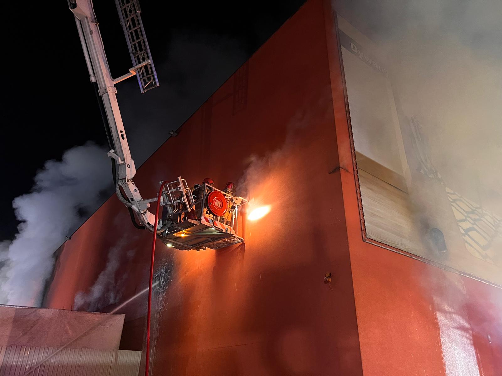 Drugi dzień gaszenia pożaru marketu budowlanego w Krośnie
