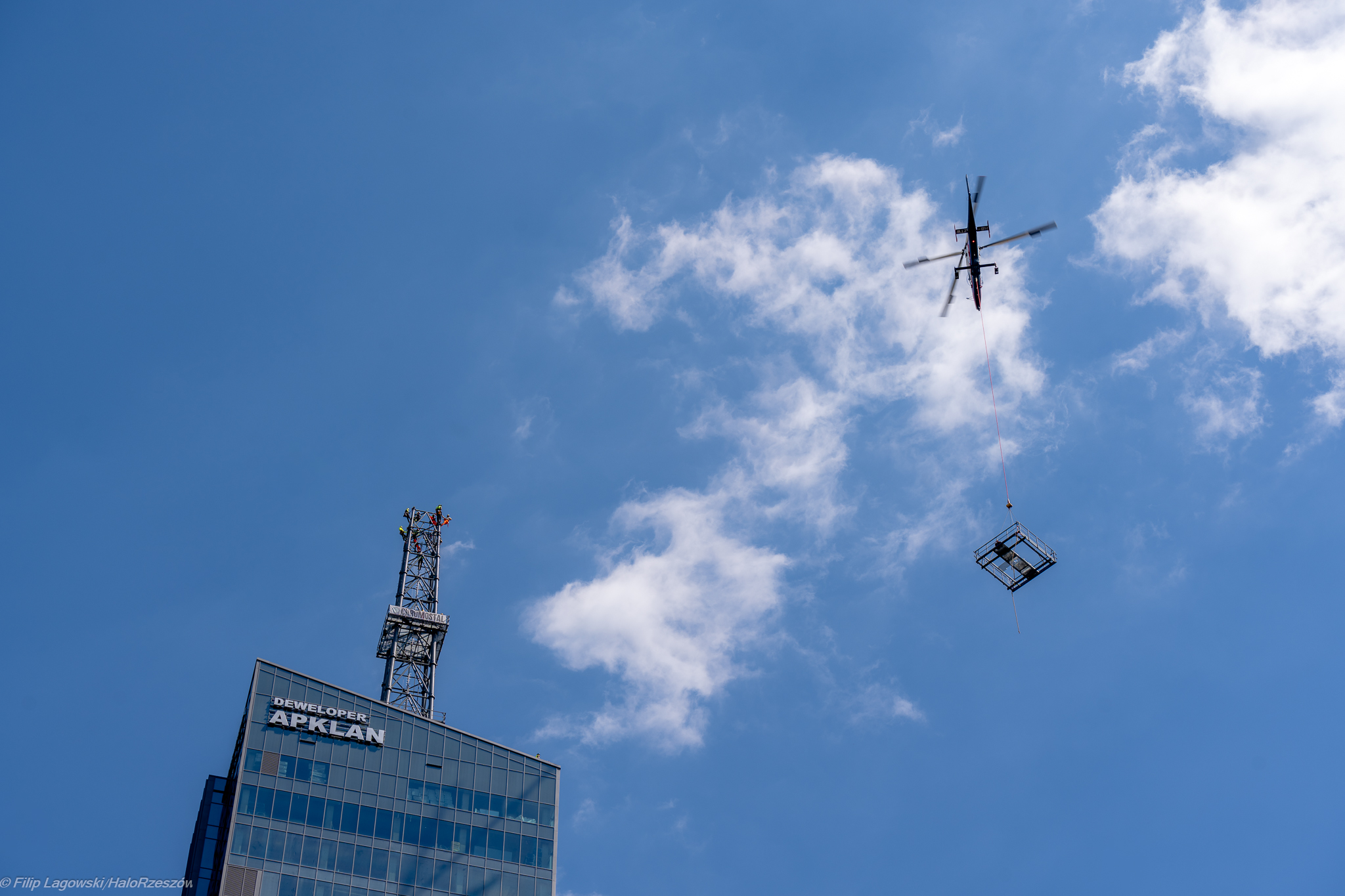 Zdjęcie: Montaż iglicy na wieżowcu Olszynki Park w Rzeszowie...