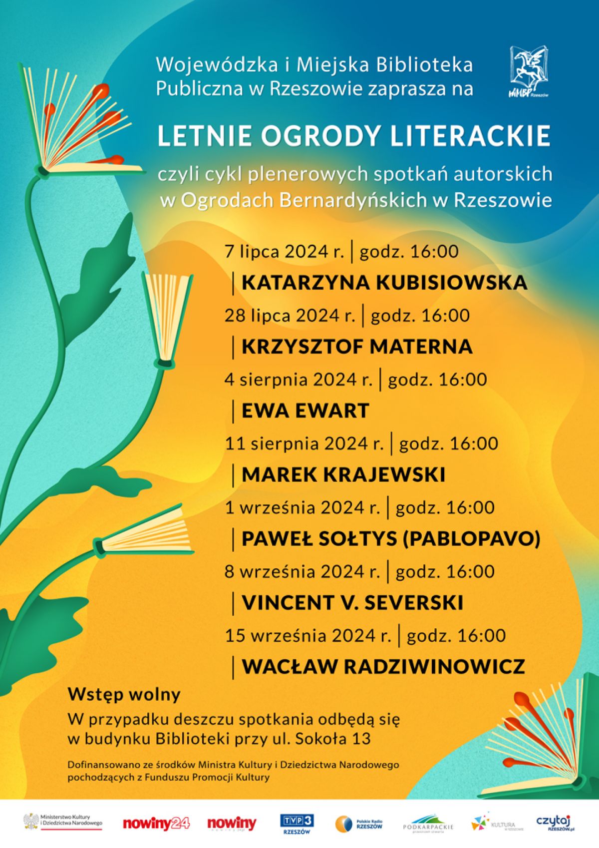 Wstęp wolny, w przypadku deszczu spotkania odbędą się w budynku Biblioteki przy ul. Sokoła 13.