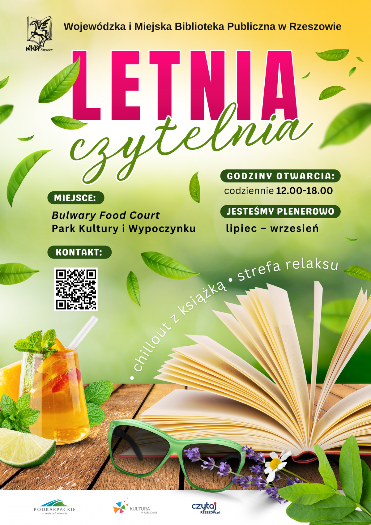 Miejsce: strefa Bulwary Food Court obok sceny w Parku Kultury i Wypoczynku Czytelnia będzie otwarta w godz. 12.00-18.00, codziennie od lipca do września.