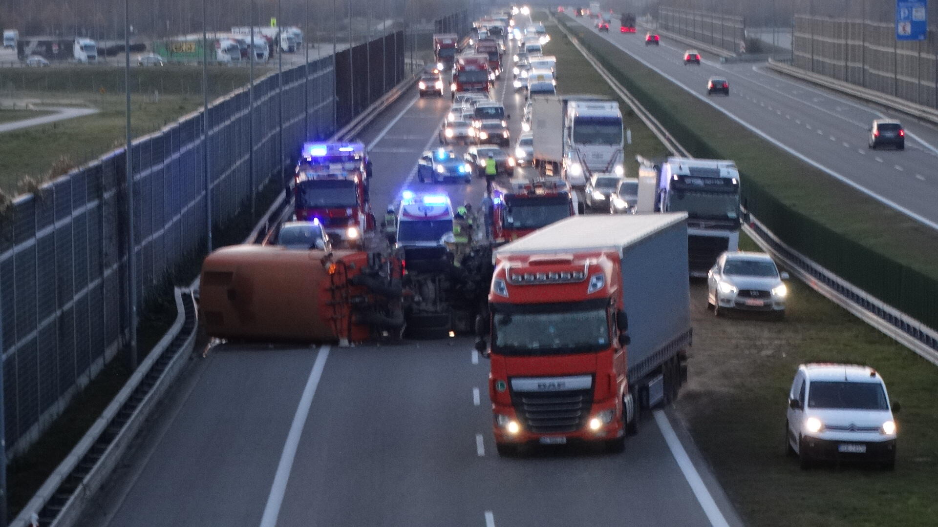 Zdjęcie: Bratkowice. Wypadek ciężarówki na autostradzie A4 [...