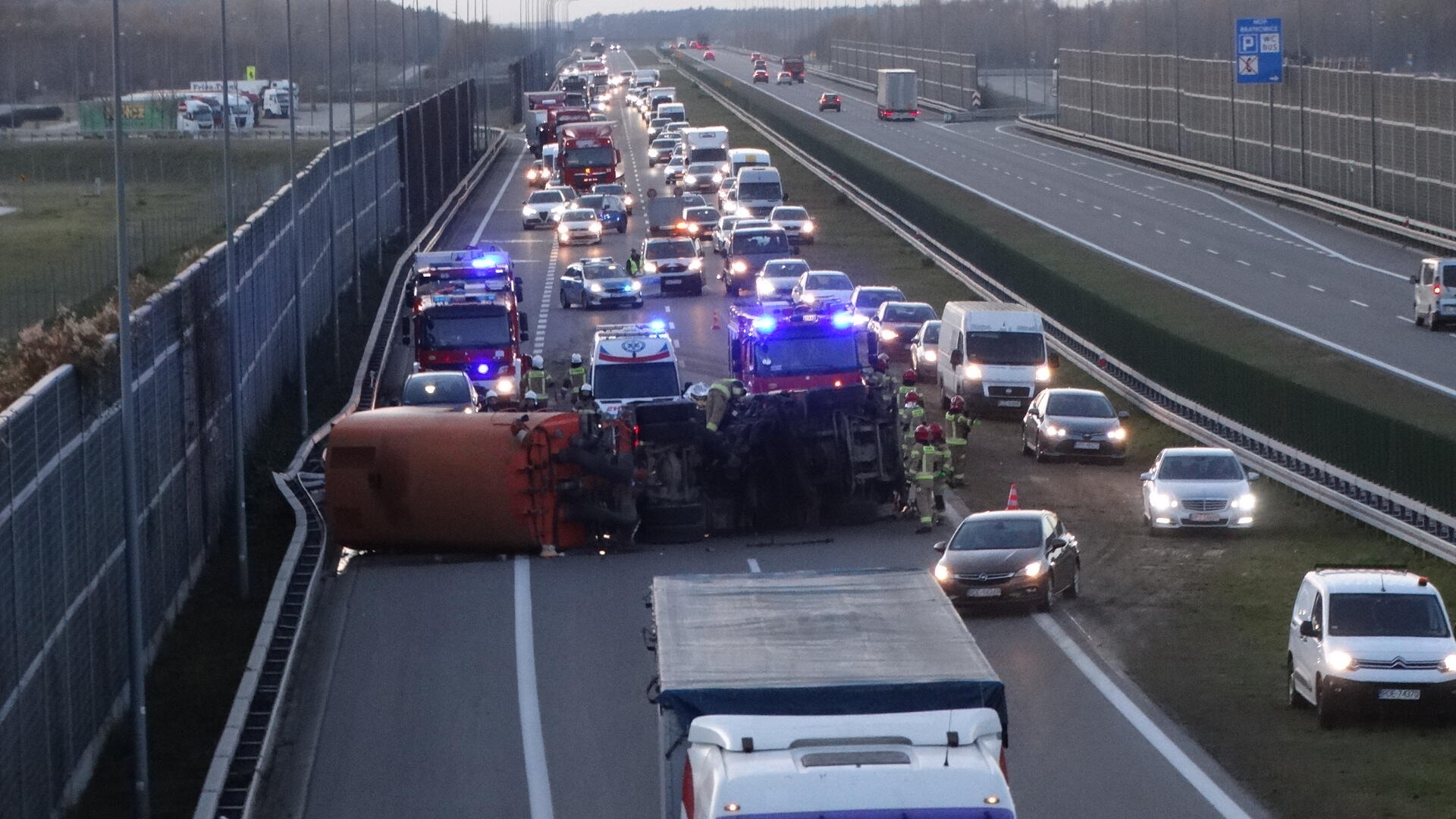 Wypadek busa na autostradzie A4 w okolicach Przeworska