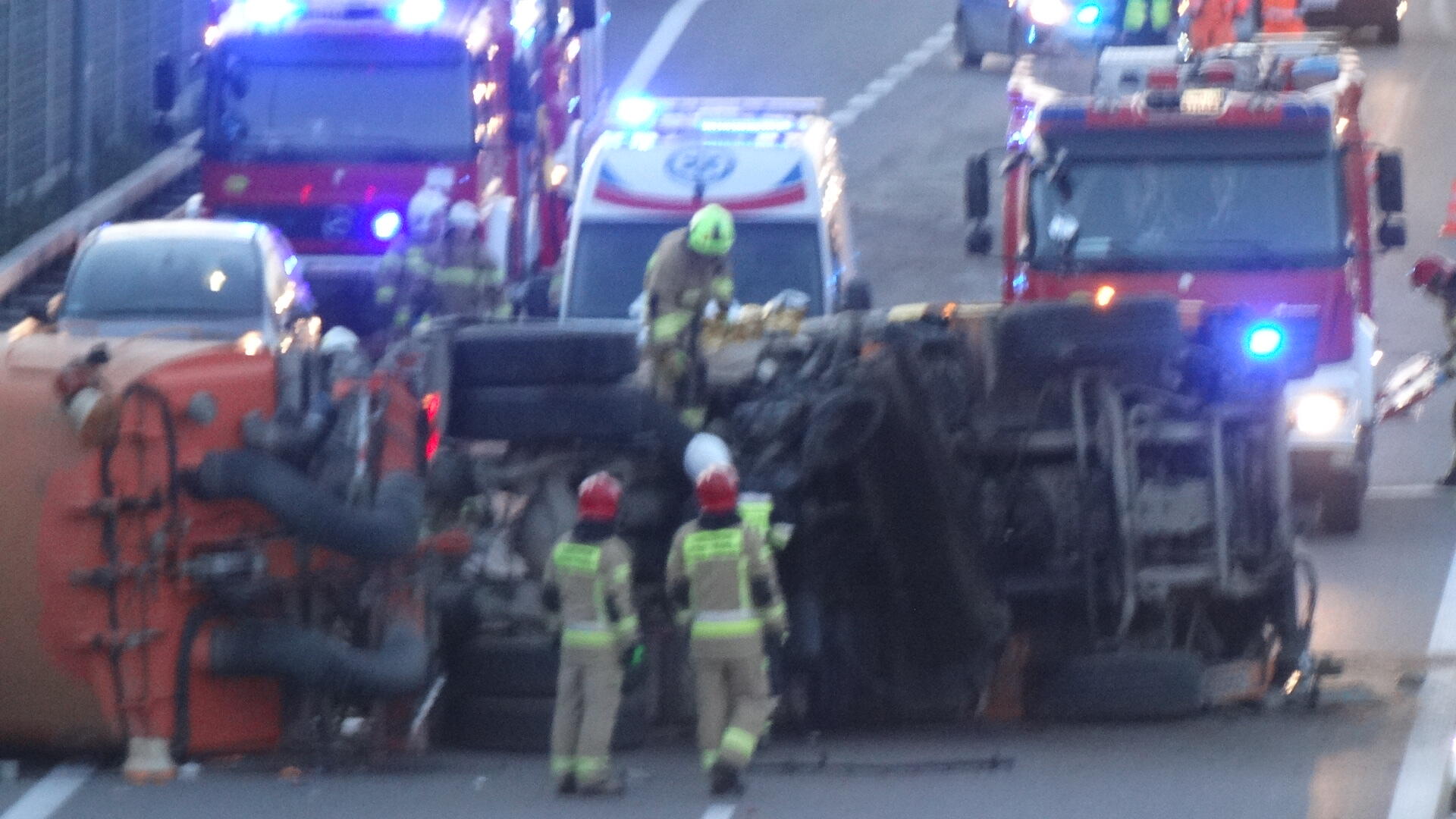 Wypadek busa na autostradzie A4 w okolicach Przeworska