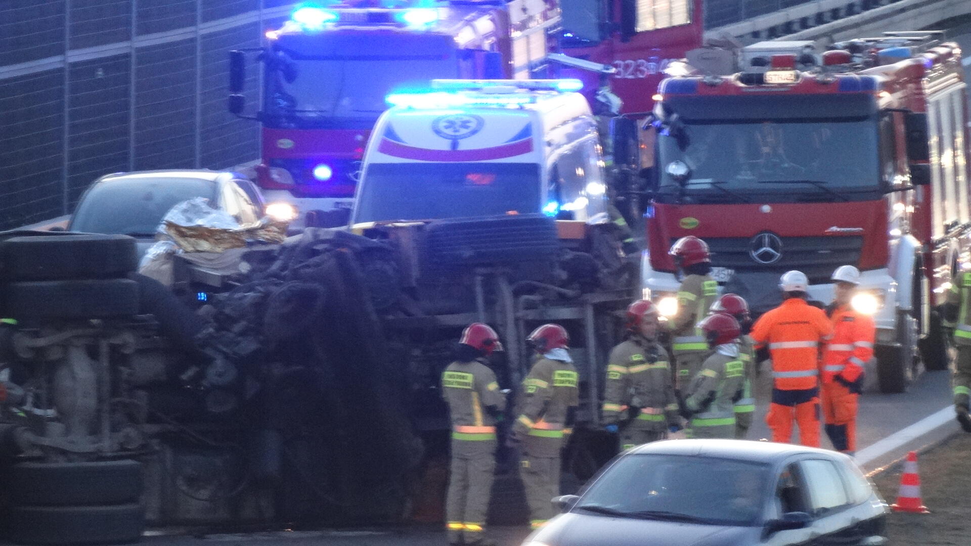 Wypadek busa na autostradzie A4 w okolicach Przeworska