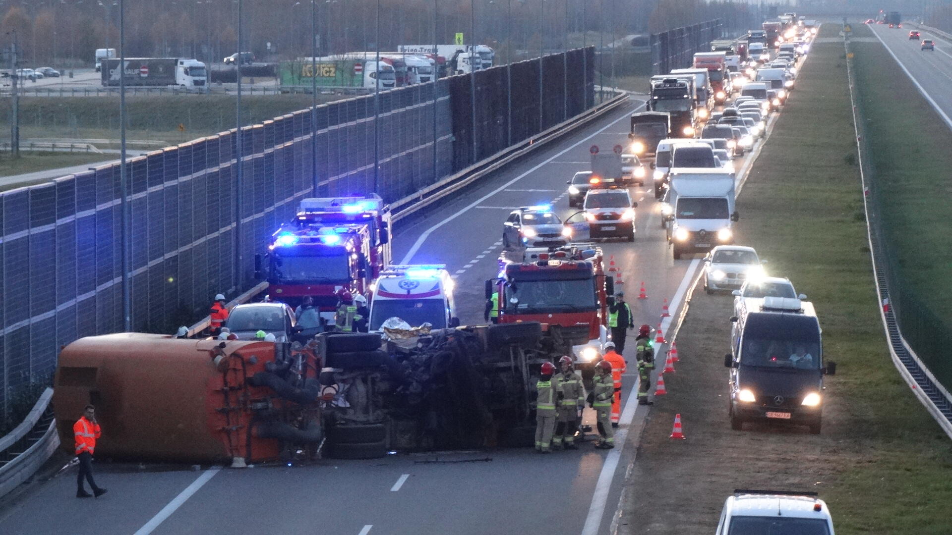 Wypadek busa na autostradzie A4 w okolicach Przeworska