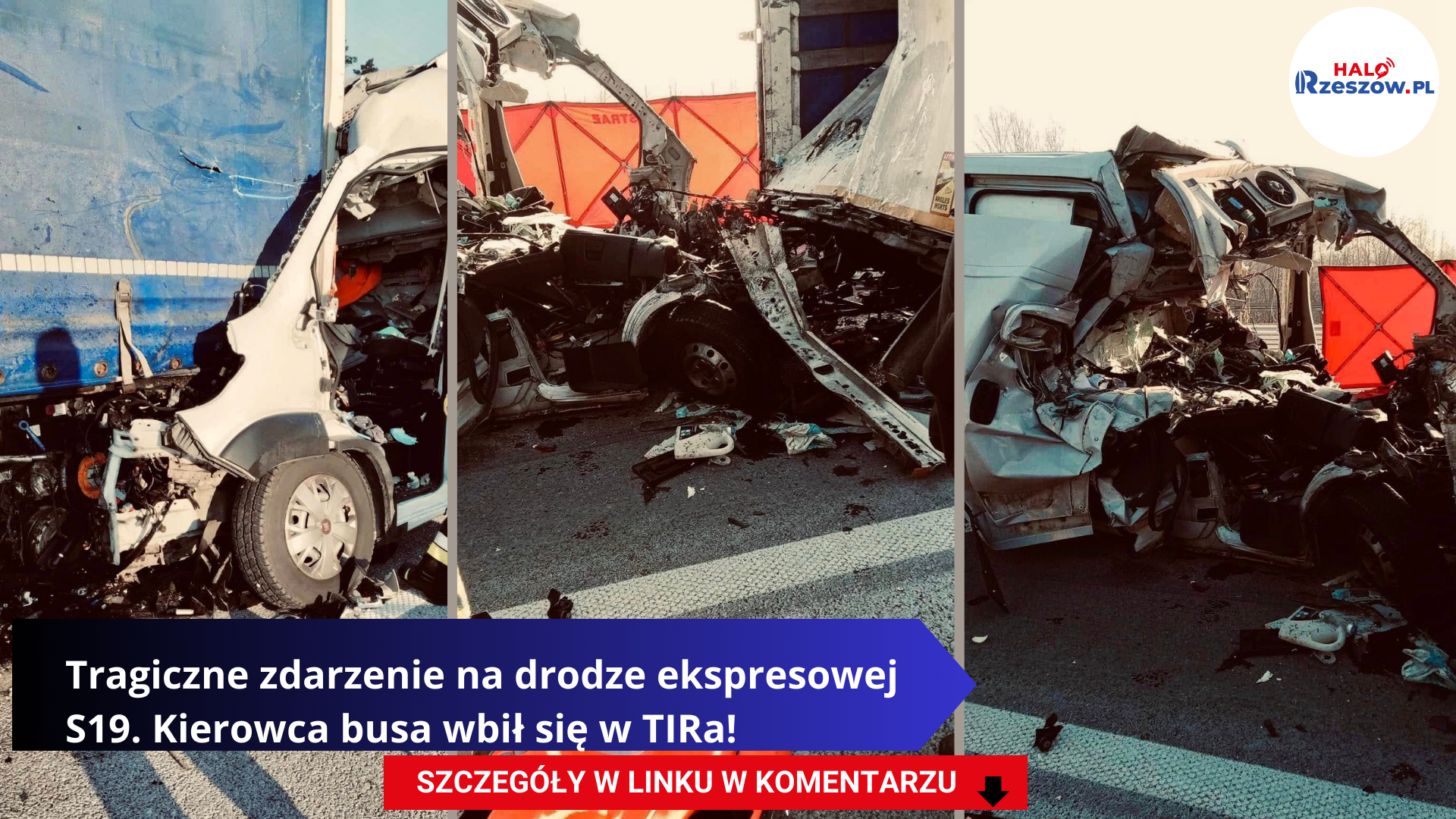 48-letni kierujący busem najechał na tył pojazdu ciężarowego, w wyniku czego poniósł śmierć na miejscu. Niżańscy policjanci pod nadzorem prokuratora wyjaśniają okoliczności tego tragicznego wypadku, do którego doszło na drodze ekspresowej S19 w gminie Rudnik nad Sanem. Czytaj: https://www.halorzeszow.pl/artykul/13334,tragiczne-zdarzenie-na-drodze-ekspresowej-s19-kierowca-busa-wbil-sie-w-tira-foto